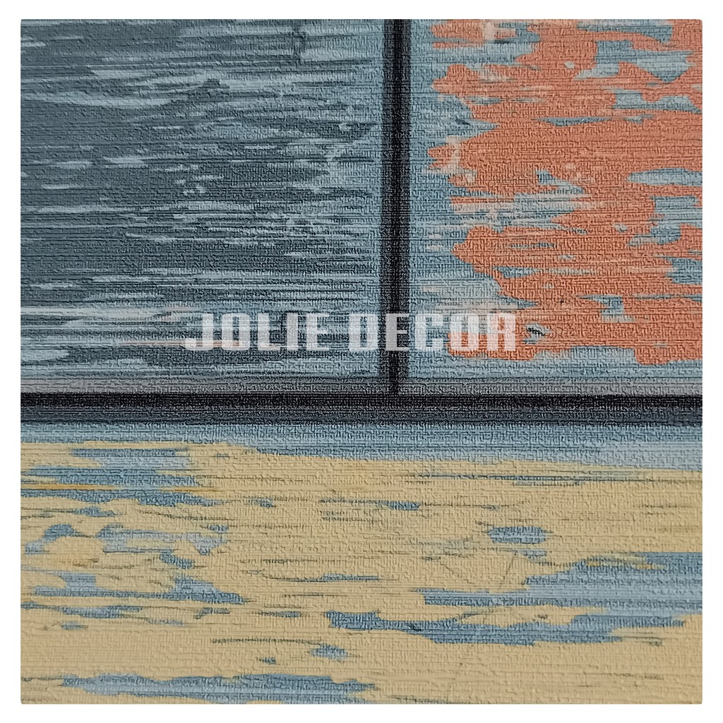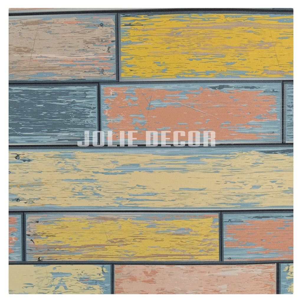 Wallpaper Dinding Vinyl Motif Kayu Palet Kasar Cream Pink Biru Kuning