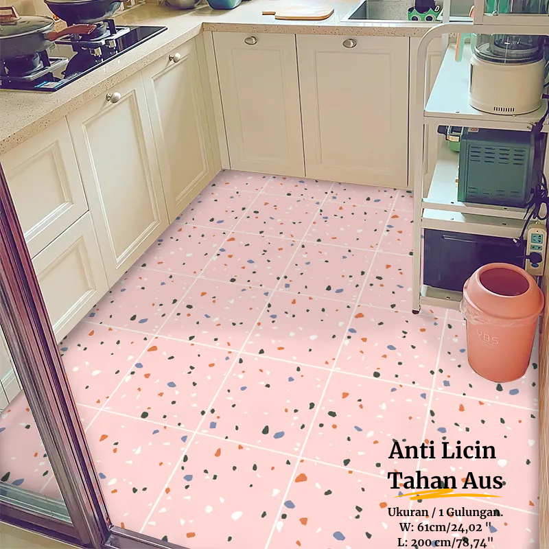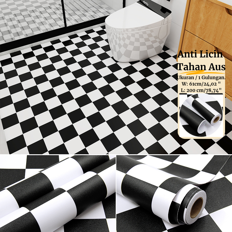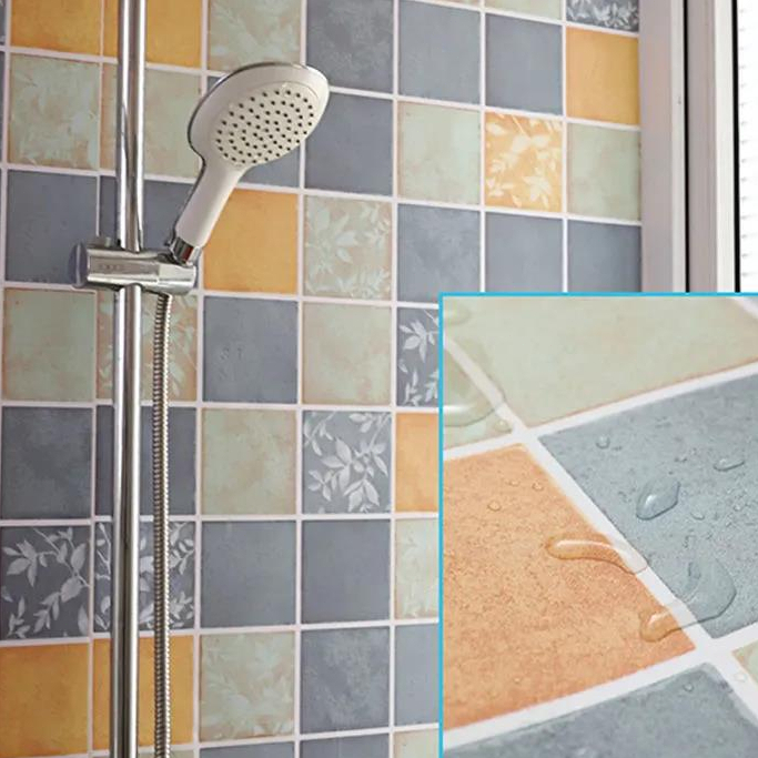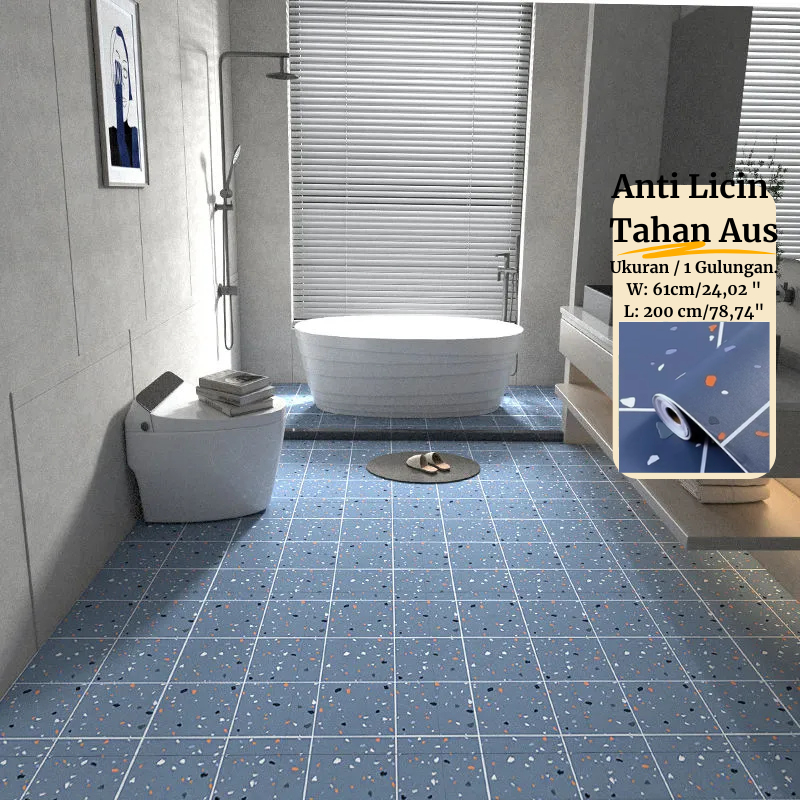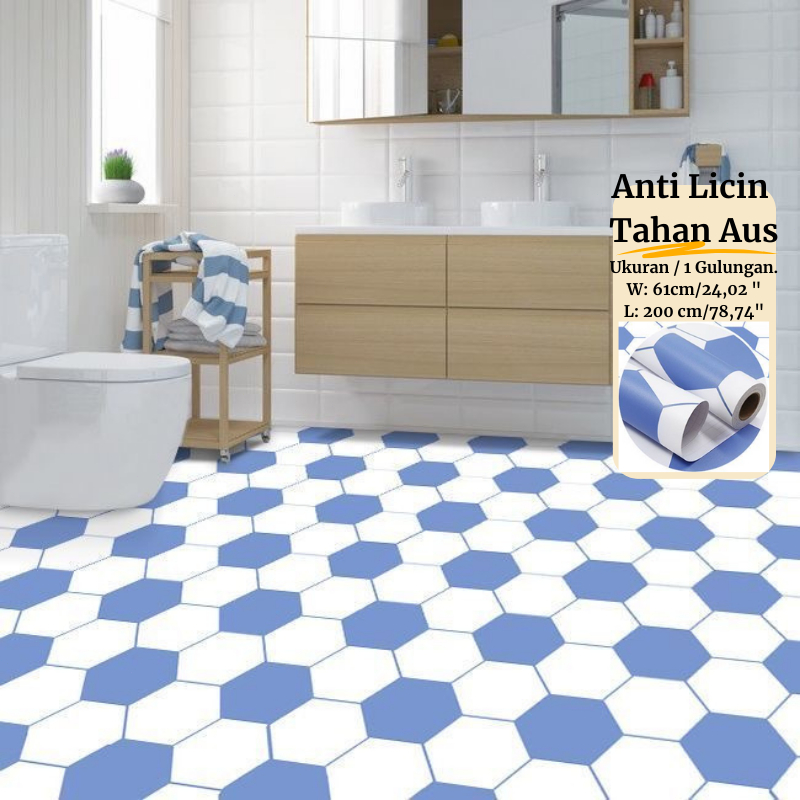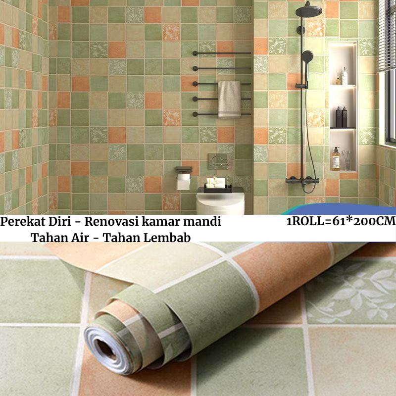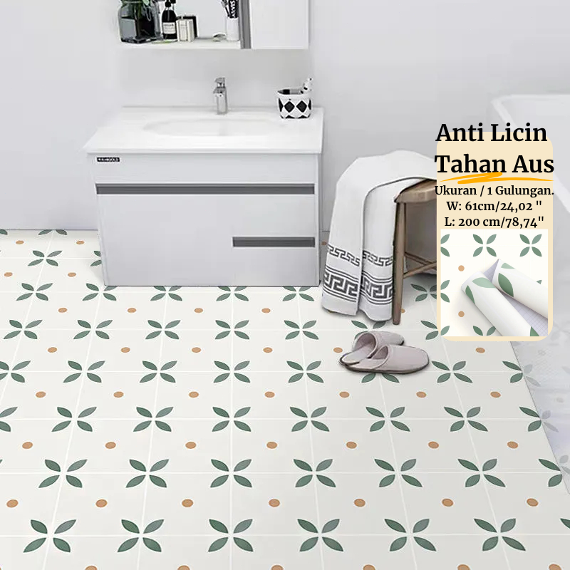 Wallpaper Kamar Mandi Tahan Air Perekat Diri 2 Meter Lantai PVC Wallpaper Stiker Dinding Dekorasi Rumah Motif Bunga Batik
