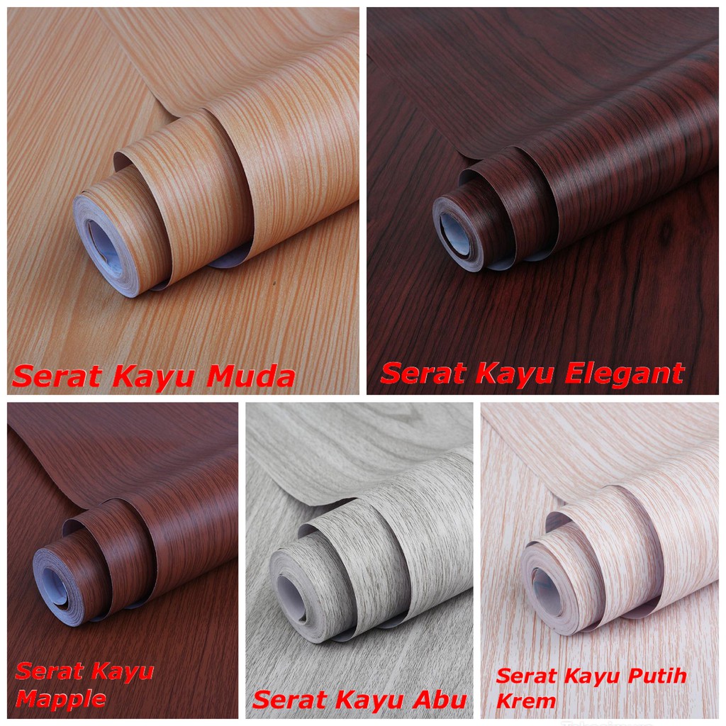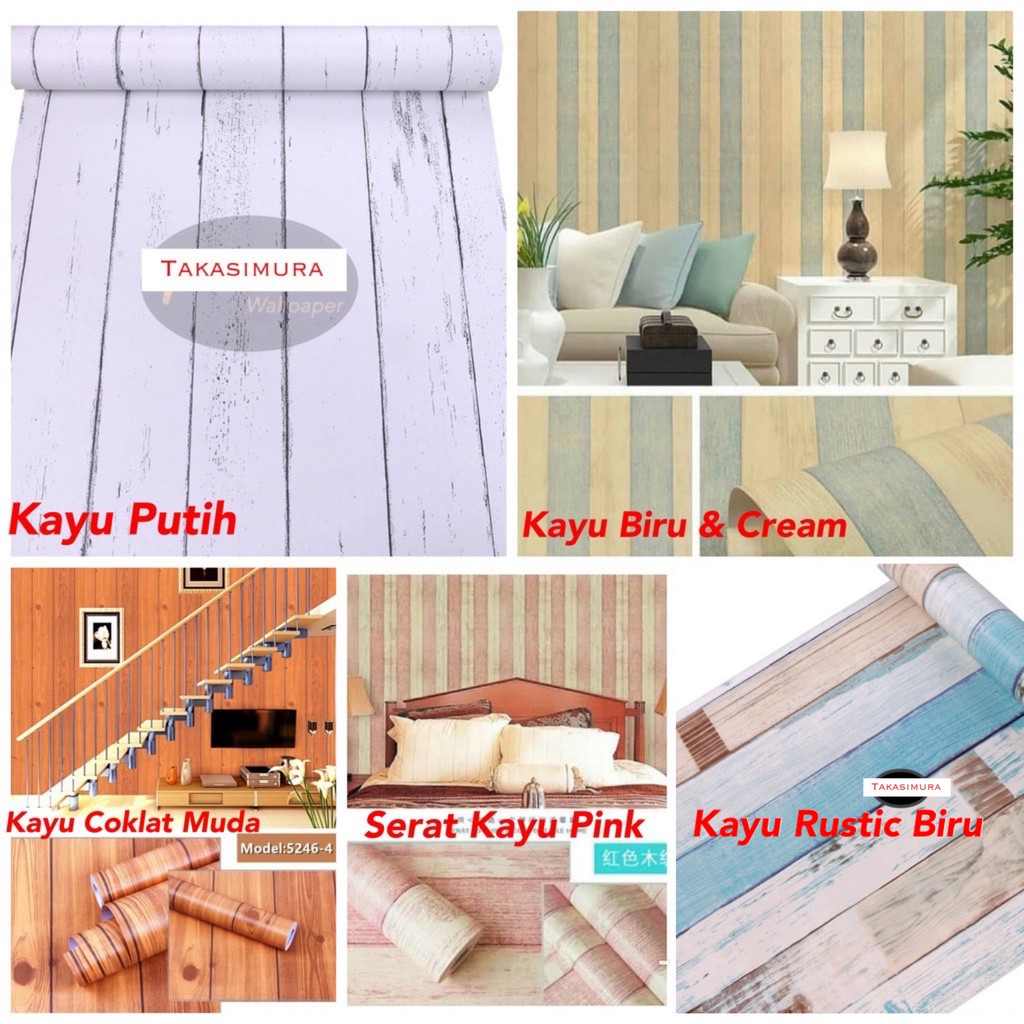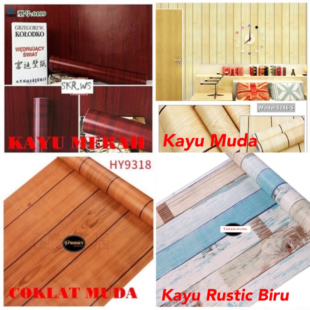 Wallpaper Kayu Dinding Motif TEMA KAYU 45 CM x 10 M Motif Kayu Coklat Putih Biru Cream Pink Kuning