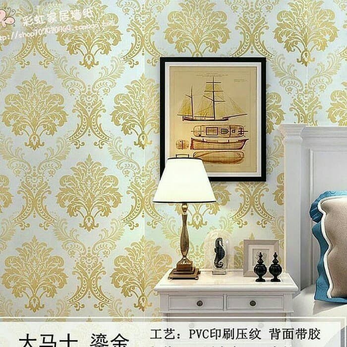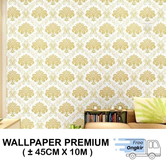 Wallpaper Sticker Dinding 3D Batik Bunga Gold Emas | Walpaper Stiker