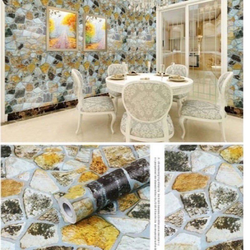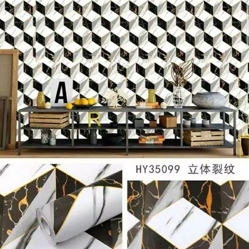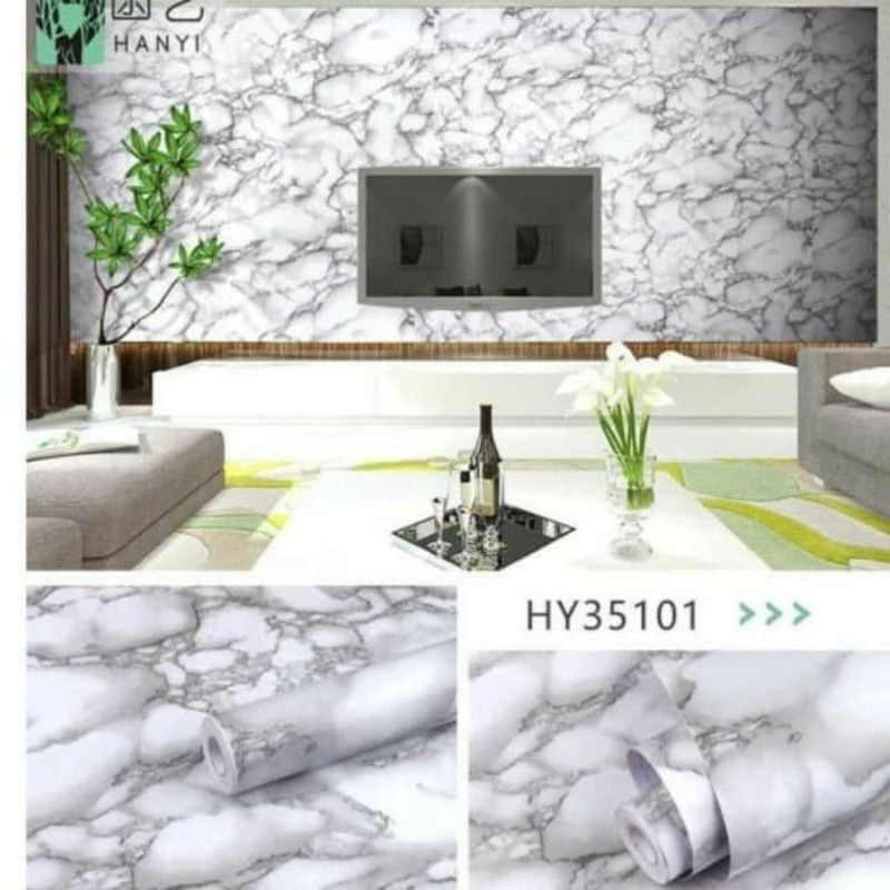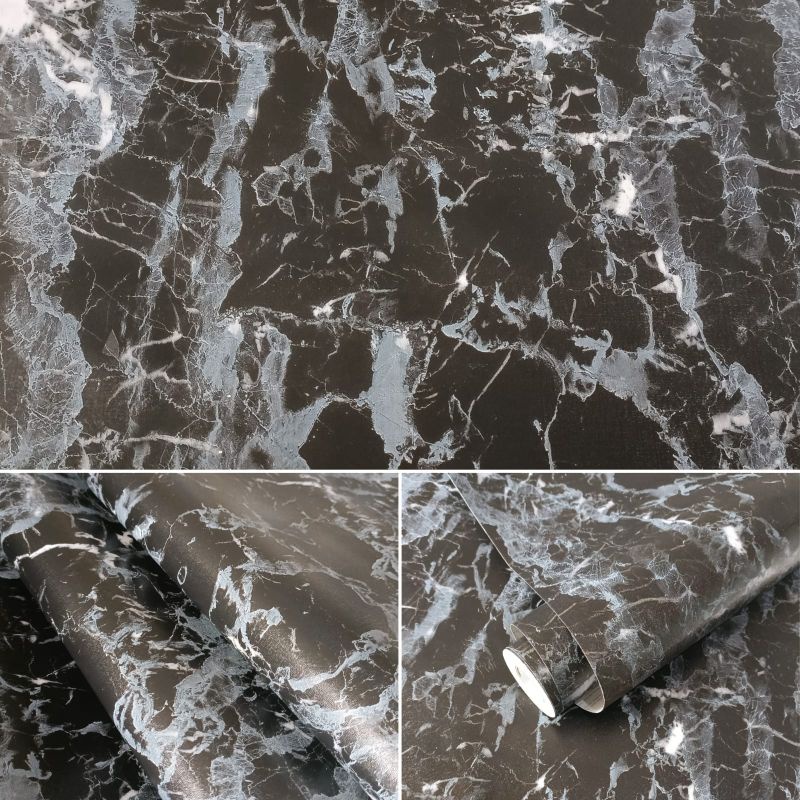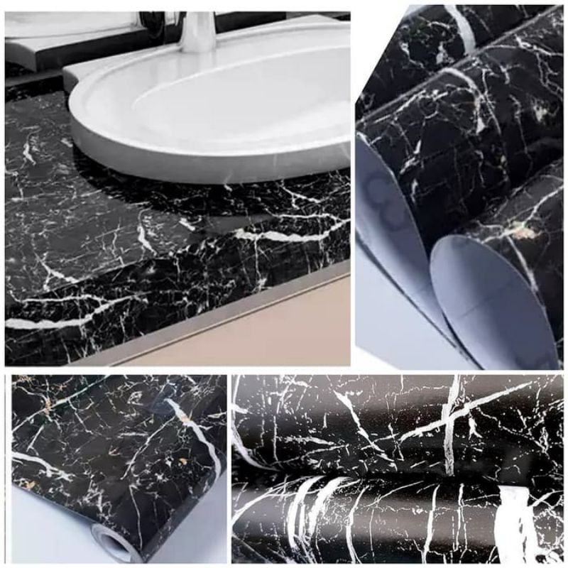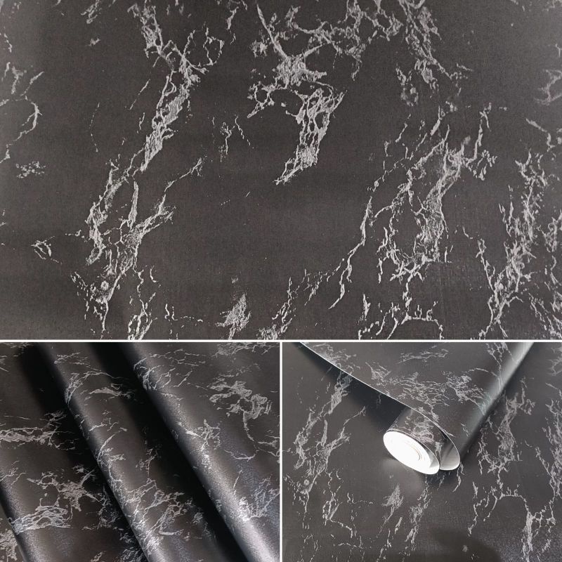 Wallpaper Sticker Dinding Batu Marmer Hitam Mewah Modern
