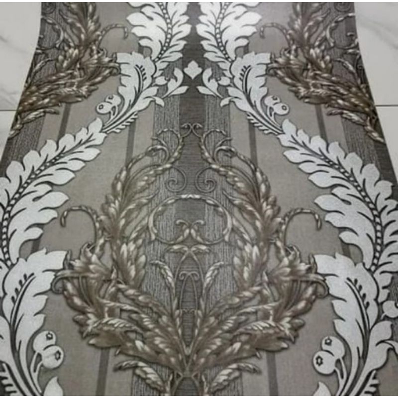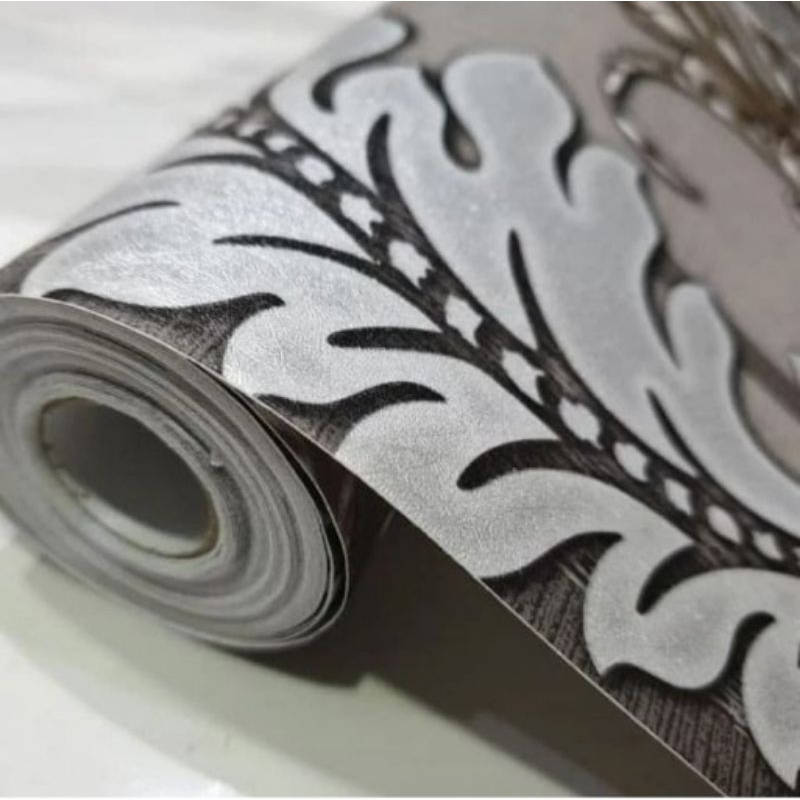 Wallpaper Sticker Dinding Motif Batik Daun Padi Putih Dasar Abu Bahan Kertas PVC Full Lem Perekat Natural Minimalis Premium Kekinian COD