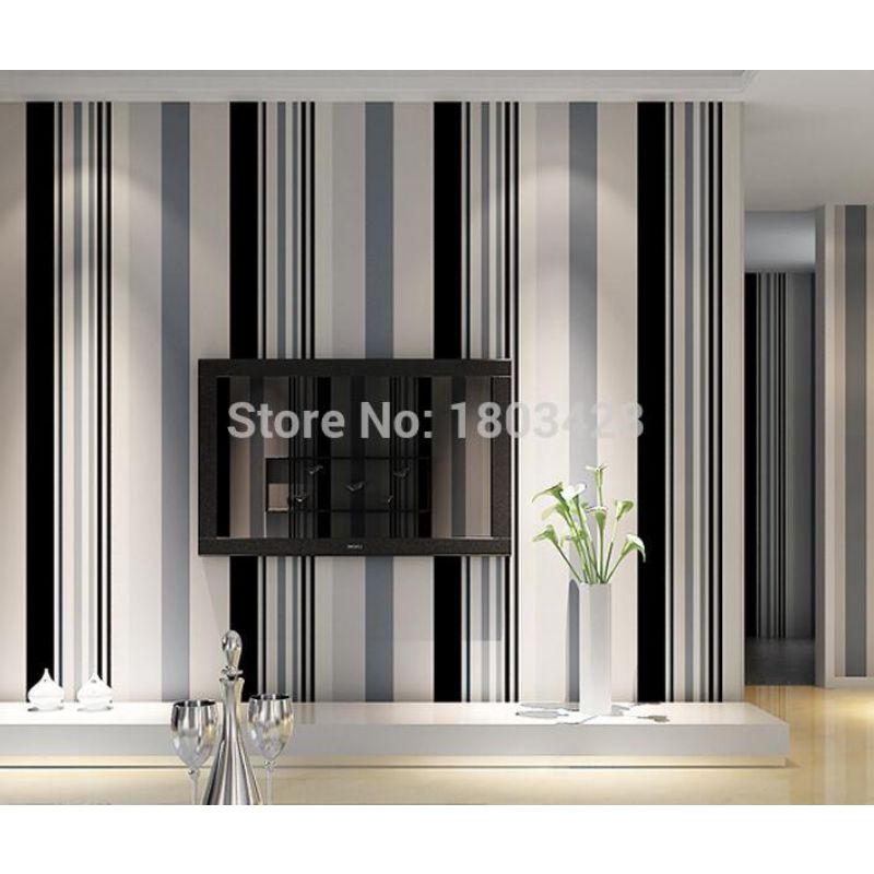 Wallpaper Sticker Dinding Motif Salur Hitam Putih