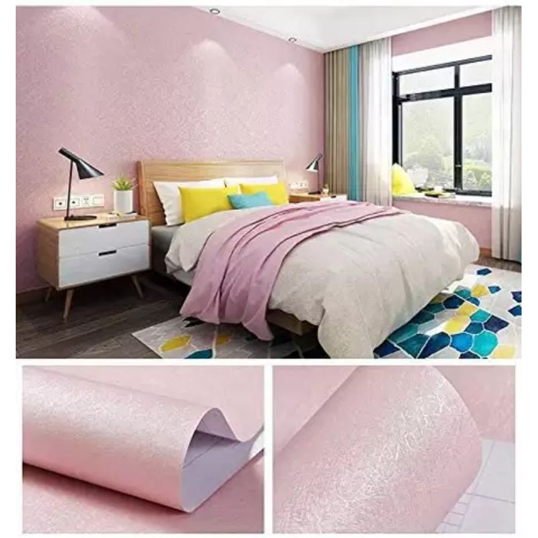 Wallpaper Sticker Dinding Pink Abstrak Cocok Untuk Ruang Tamu Dan Kamar Tidur Bertekstur Polos Pink Putih Biru Abu-abu Krem Mewah Premium Dekorasi Ruang Tamu