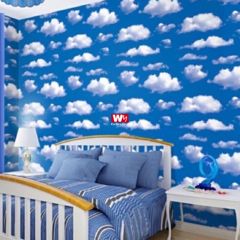 Wallpaper Sticker Dinding Plafon Motif Awan 45cm x 100cm Wallsticker Atap Plafon Motif Awan Wallpaper Dinding Motif Awan Biru Wallpaper Murah