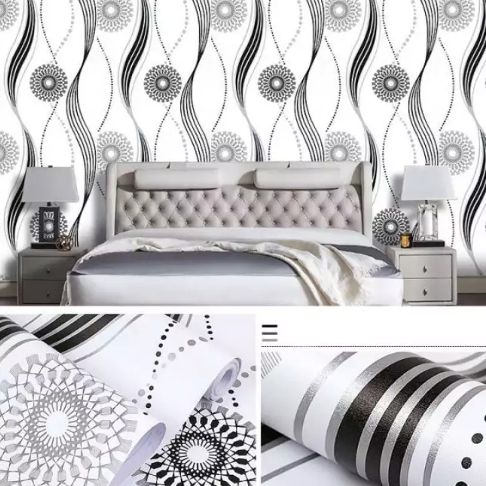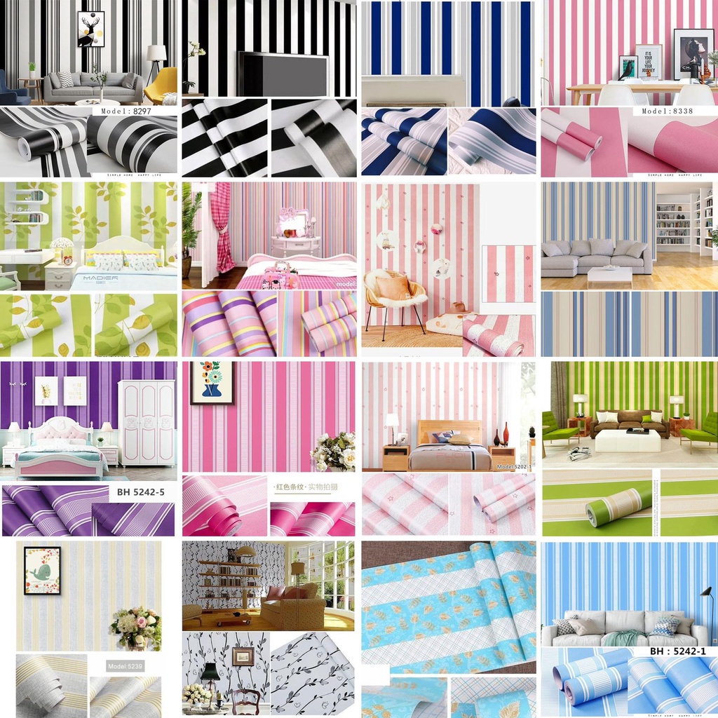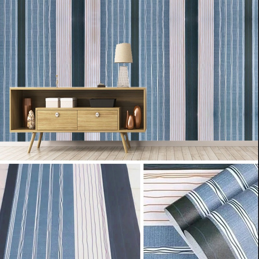 Wallpaper Stiker Dinding 45cm x 10m Walpaper Stiker Karakter Motif Salur Garis