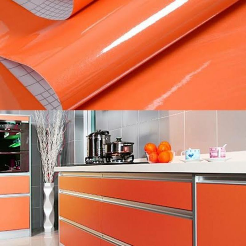 Wallpaper Stiker Dinding Dapur Premium Glossy Warna Orange Polos Mewah Elegan Premium Modern
