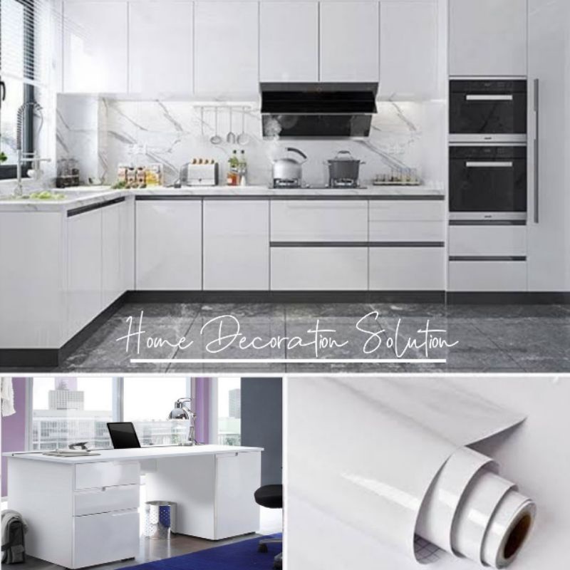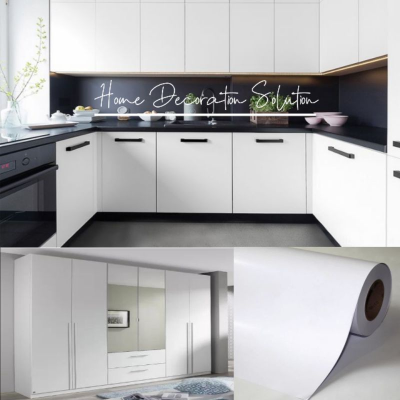 Wallpaper Stiker Furniture Lemari Meja Putih Polos Anti Air Dan Minyak/ Sticker Vinyl Meja / Walpaper / Wall Sticker/ Wallstiker