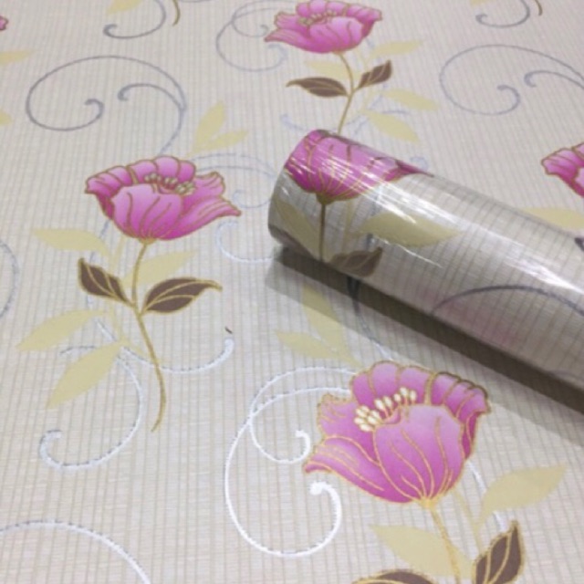 Wallpaper Stiker / Sticker Bunga Pink 10 Meter x 45 Cm