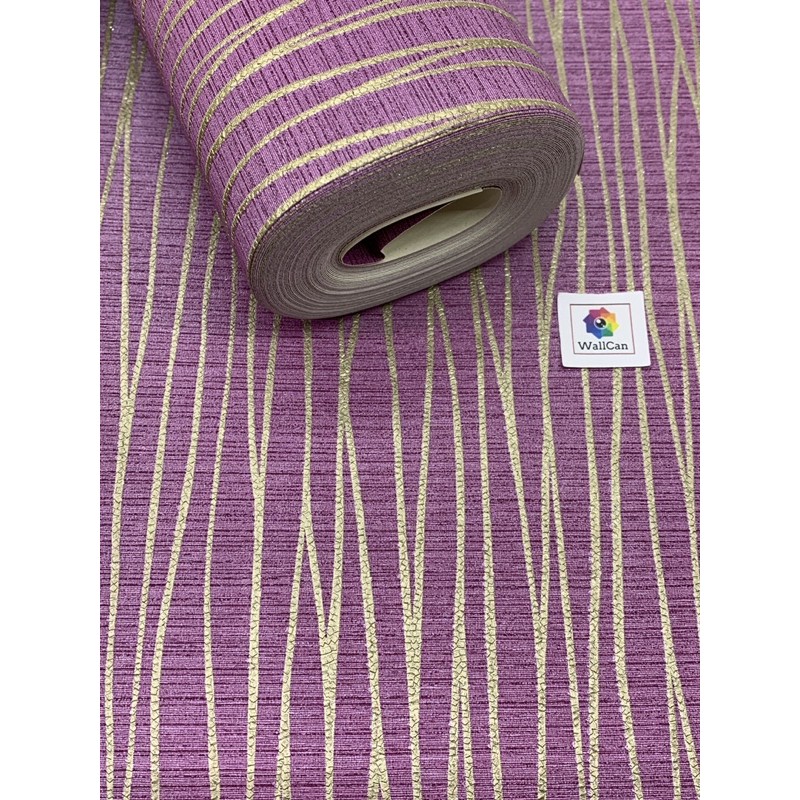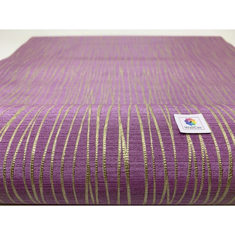 Wallpaper Vinyl Mewah non sticker motif salur ungu 53cmx10m