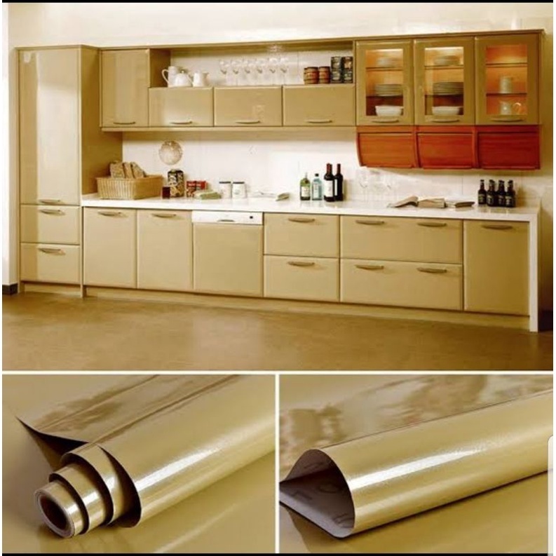 Wallpaper kitchen set sticker lemari stiker kitchen set kulkas kabinet GLOSSY WARNA MERAH HIJAU HITAM UNGU KUNING GOLD GLOSSY PUTIH BIRU TEBAL