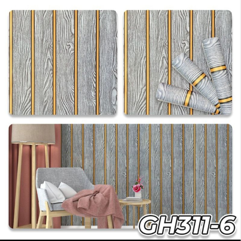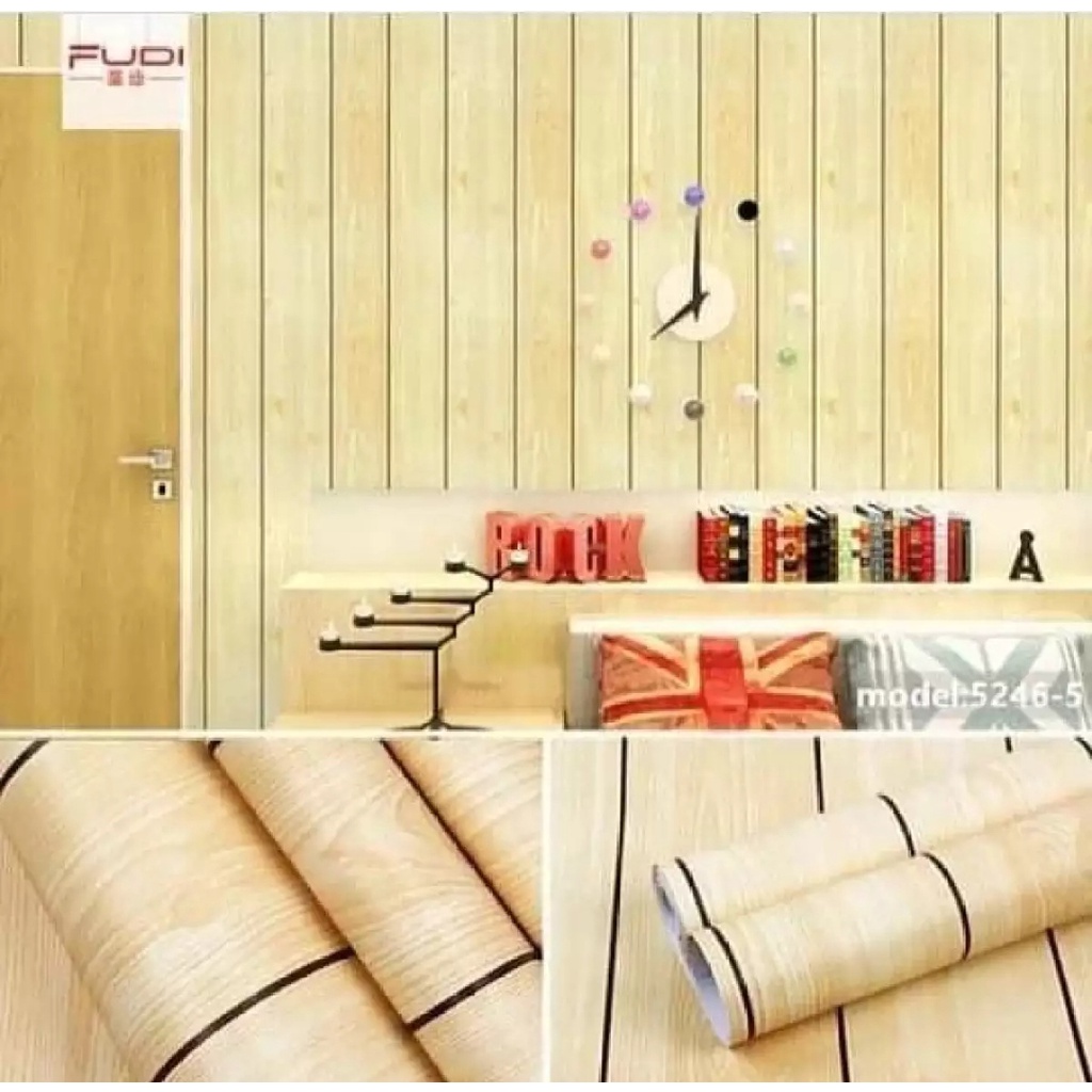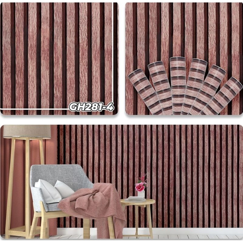 Wallpaper sticker dinding serat kayu bambu