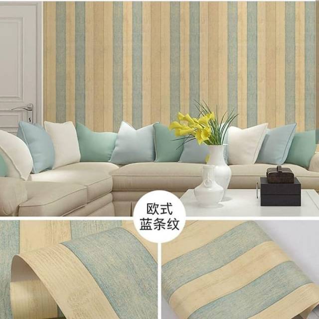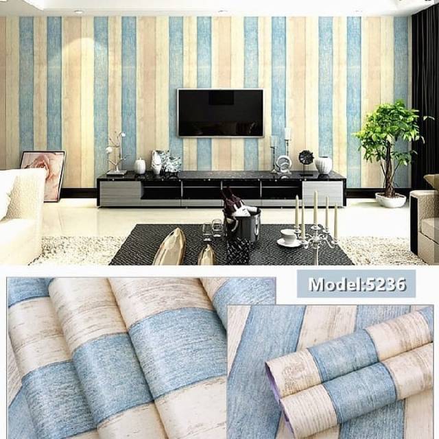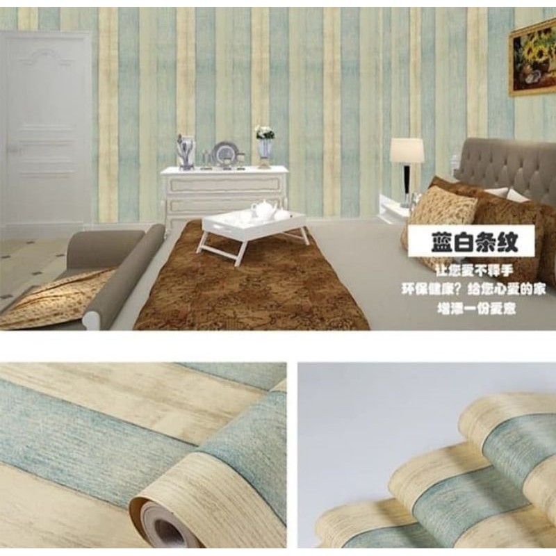 Wallpaper stiker motif papan kayu 3 warna biru toska