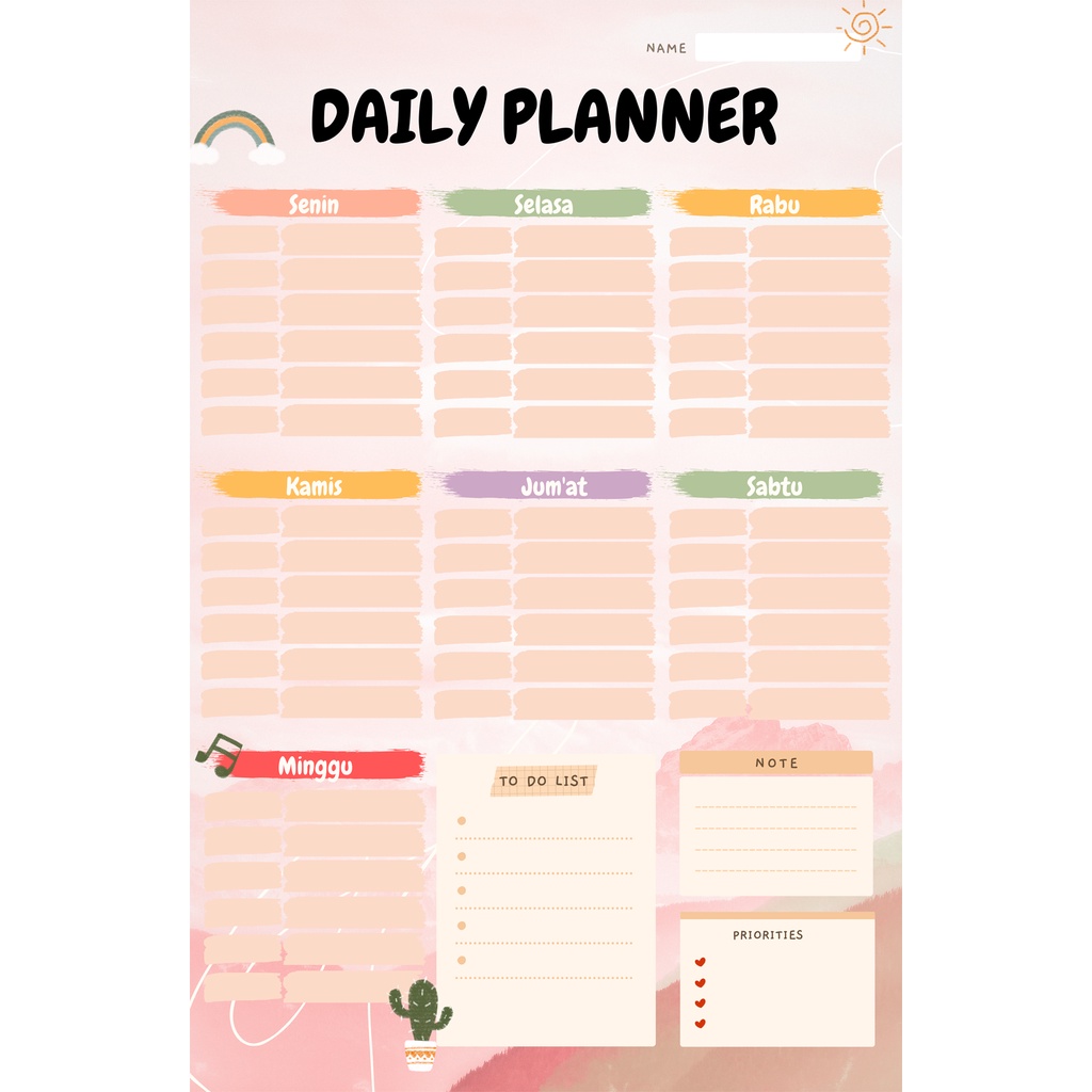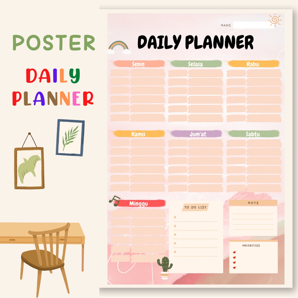 Wallplanner Aesthetic Jadwal Kegiatan Harian Murah - Daily Planner Schedule Board