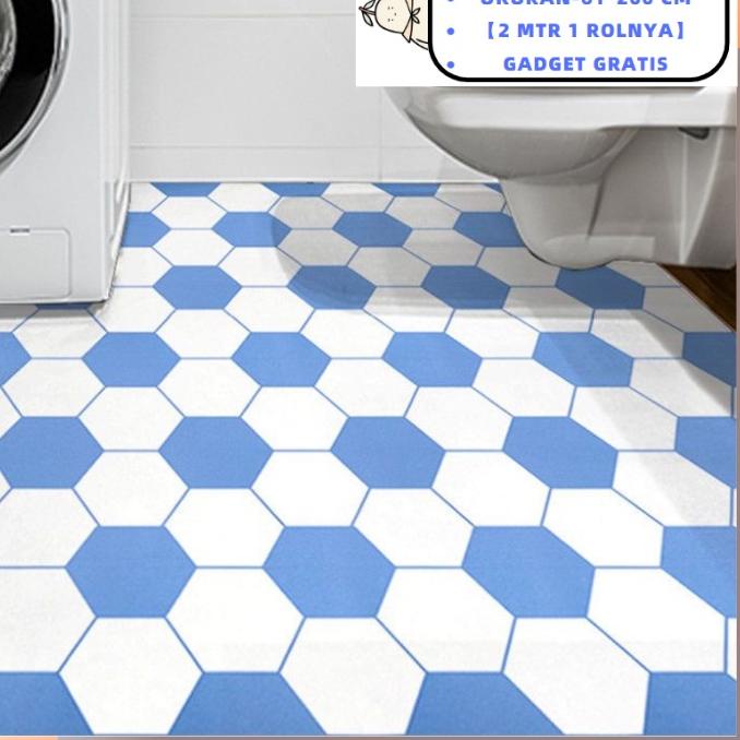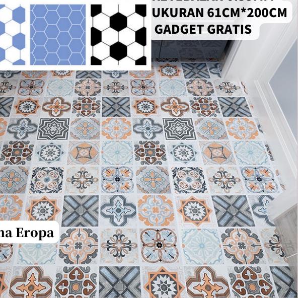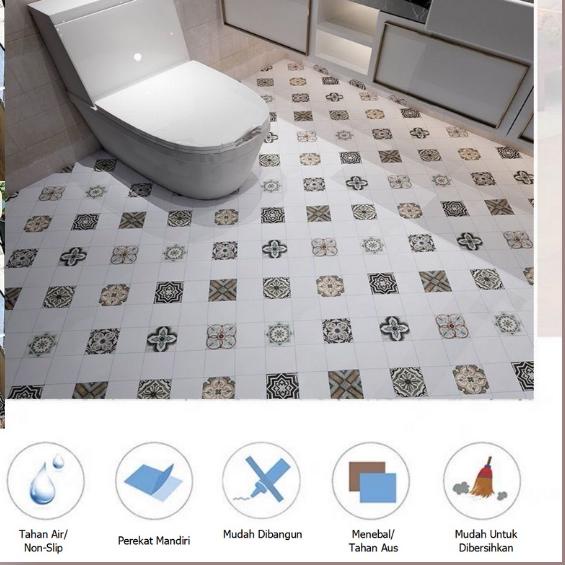 Walpaper Lantai Kamar Mandi Tahan Air Stiker Lantai PVC Stiker Dekorasi Kamar Mandi Wallpaper Non-Slip Menebal Kertas Perekat Diri 61*200cm