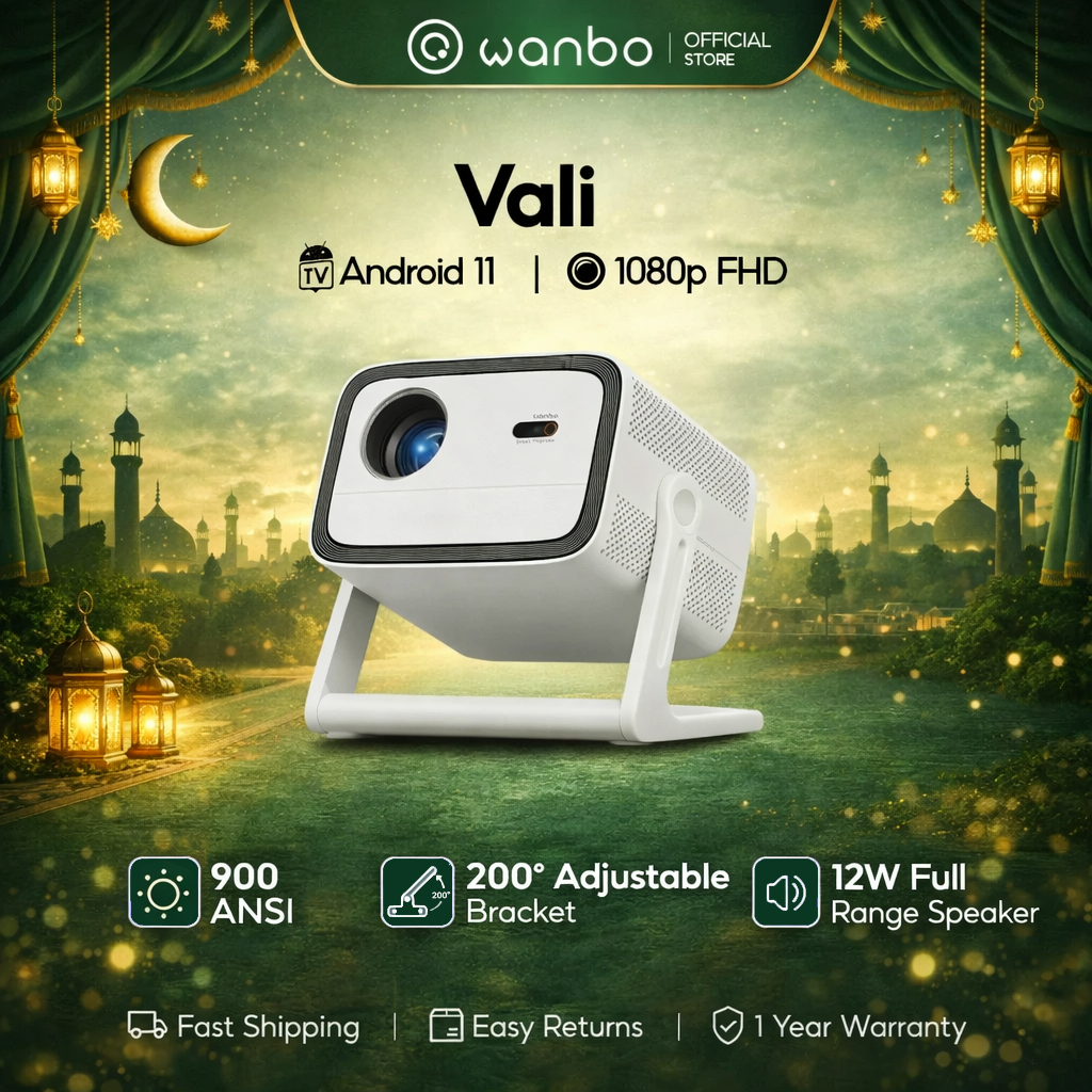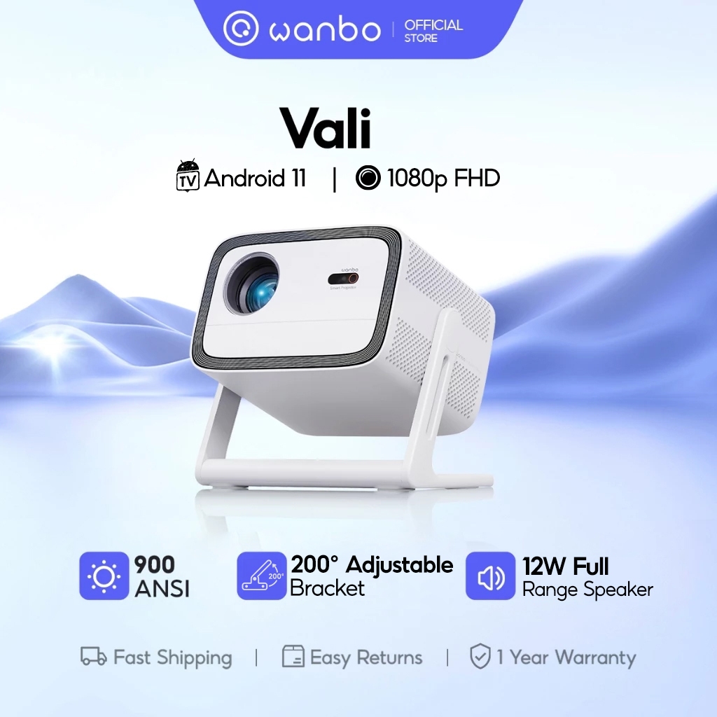Wanbo Vali Projector Android TV 11 Netflix 200° Rotating Gimbal Projector 900 ANSI Home Theater Proyektor 12 Watt Full Range Speaker