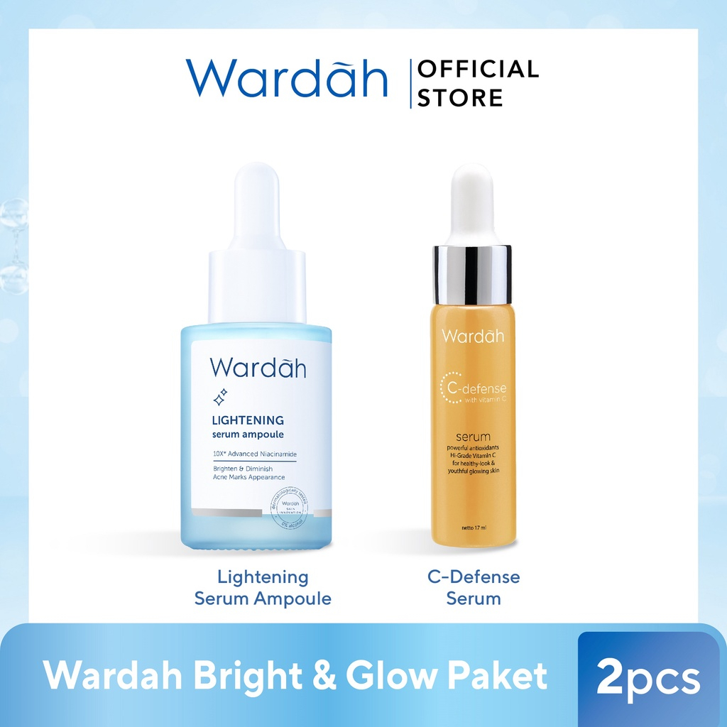 Wardah Bright & Glow Paket (Lightening Serum Ampoule 30 ml + Wardah C-defense Serum 17 ml)