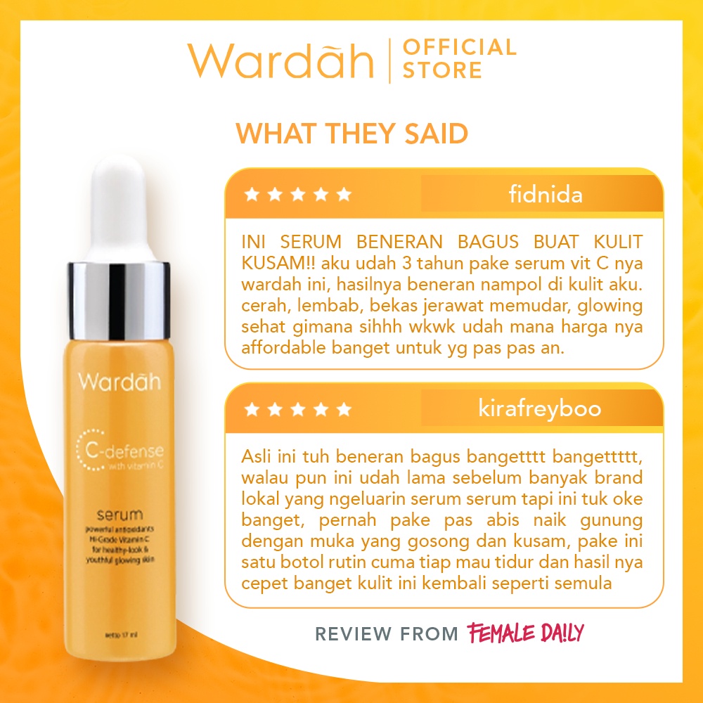WARDAH 10% Vitamin C + Allantoin C-Defense Serum 17 ml - Serum Mencerahkan dengan HiGrade Vitamin C yang Antioksidan - Mencerahkan dan Menyegarkan - Untuk Semua Jenis Kulit - Skincare