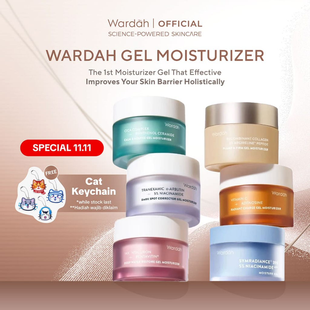 WARDAH Gel Moisturizer Series 30 g - Plump & Firm Collagen Moist, Tranexamic Alpha Arbutin, Symradiance, Cica Complex + Panthenol Ceramide, 14X Hyaluronic + Pentavitin, Vitamin C + Adenosine - Mencerahkan Wajah Kusam, Pelembab, Perawatan - Skincare