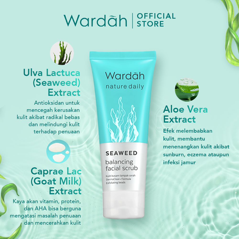 WARDAH Nature Daily Seaweed Balancing Facial Scrub 60 ml - Scrub dengan seaweed yang lembut - Hasil Lembab dan Tidak Membuat Kulit Kering - Untuk Semua Jenis Kulit