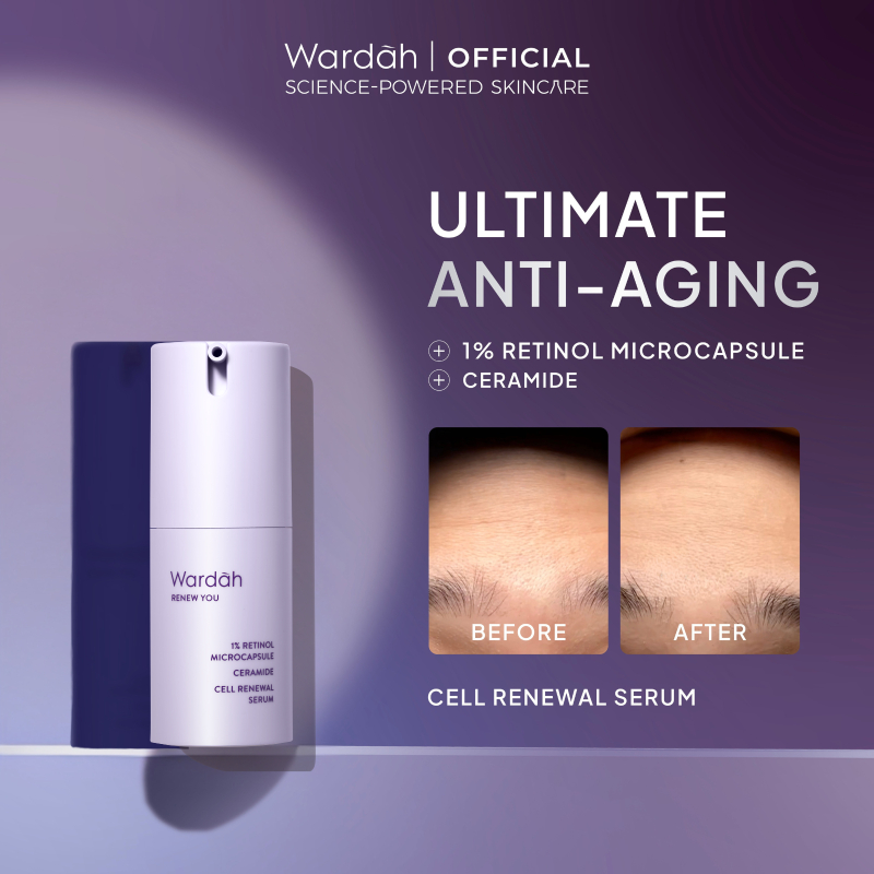 WARDAH Renew You 1% Retinol Microcapsule Ceramide Cell Renewal Serum - Double Encapsulated, Plumpy Smoother Skin, Menyamarkan Garis Halus, Mencegah Tanda Penuaan, Menghaluskan Kulit, Elastisitas, Mengecilkan Pori-Pori - Skincare