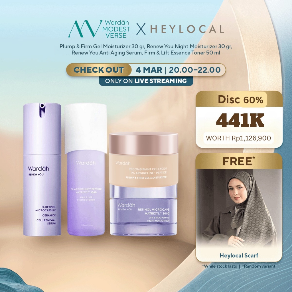 WARDAH Renew You Paket Lengkap Full Regime (Serum, Night Cream, Essence Toner, Day Cream, Facial Wash, Moisturizer) - Skincare