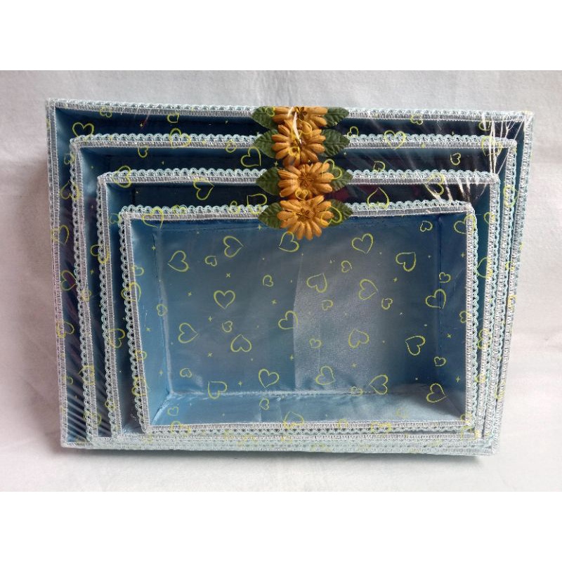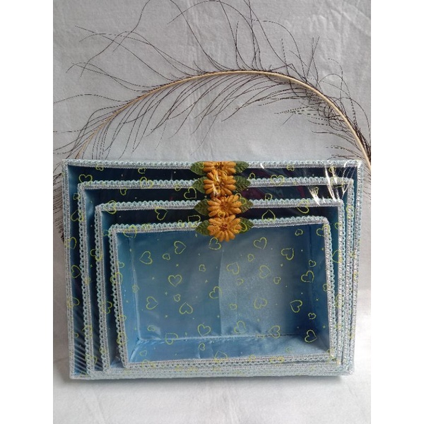 Warna Biru Kotak Box Hantaran Pernikahan 1 set / Kotak Mahar Seserahan Bentuk Buka Tanpa Tutup Bahan KARDUS