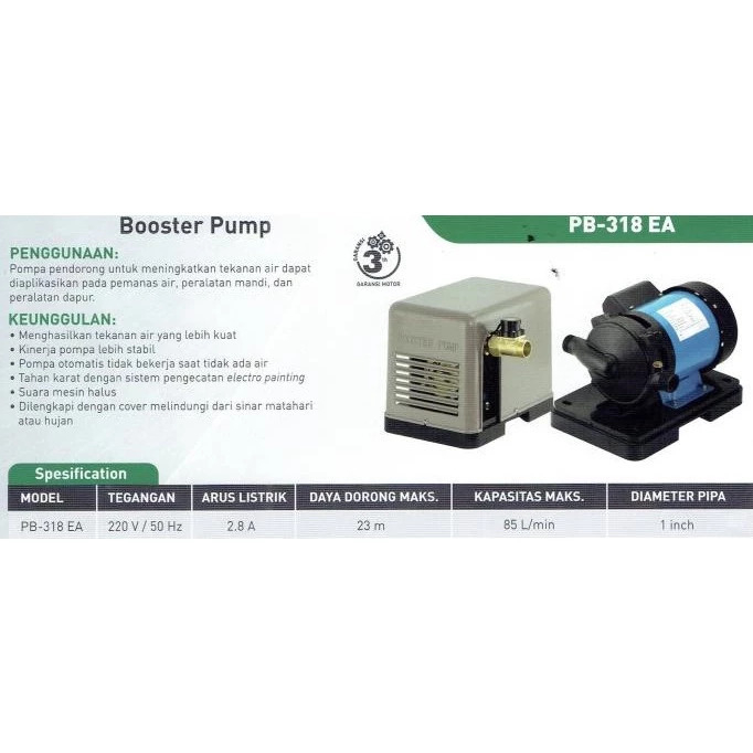 Wasser PB-169 EA Booster Pump Pompa Dorong Automatic Flow Switch Booster Pump Garansi Resmi