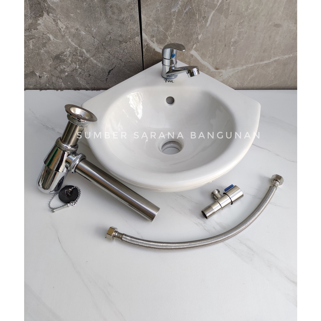 Wastafel Sudut Komplit Set / Westafel Keramik Cuci Tangan Kecil Mini