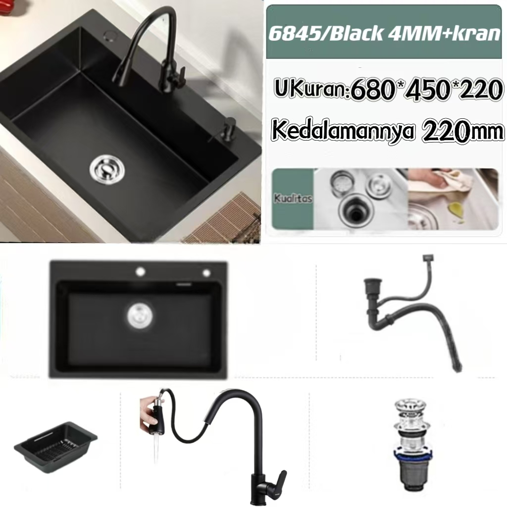 Wastafel cuci piring Wastafel dapur stainless steel multifungsi dengan wastafel cuci piring rumah tangga dilengkapi keran tarik/Bak cuci piring Ketebalan 4.0mm