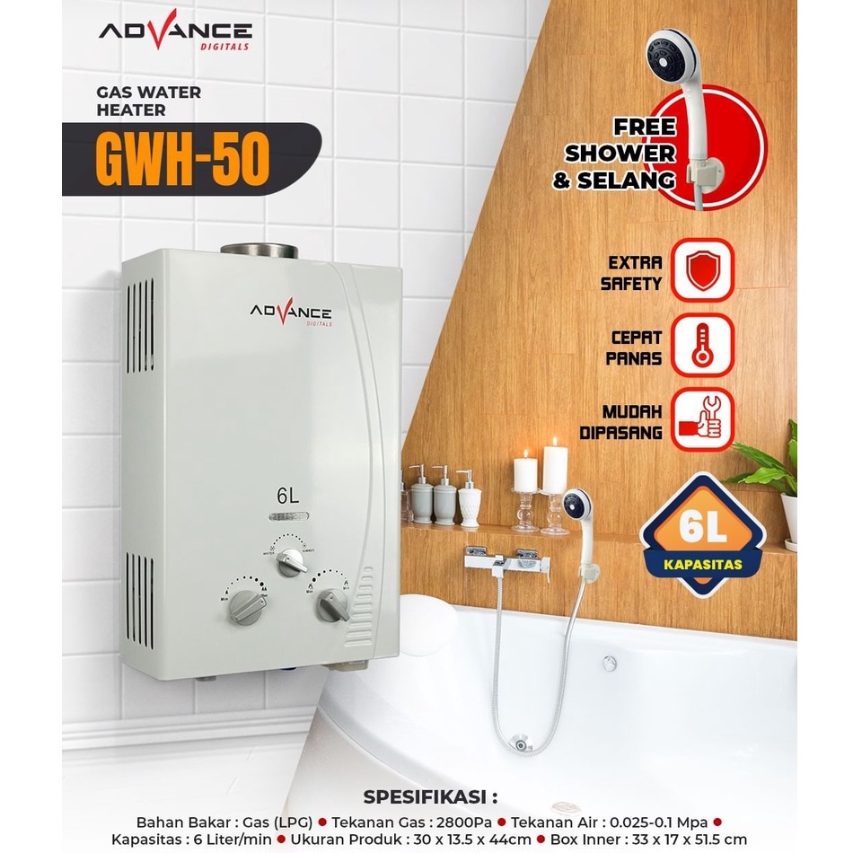 Water Heater Advance GWH 50 GWH 60 6L PEMANAS AIR GAS DIGITAL DAN OTOMATIS / Gas Water hiter