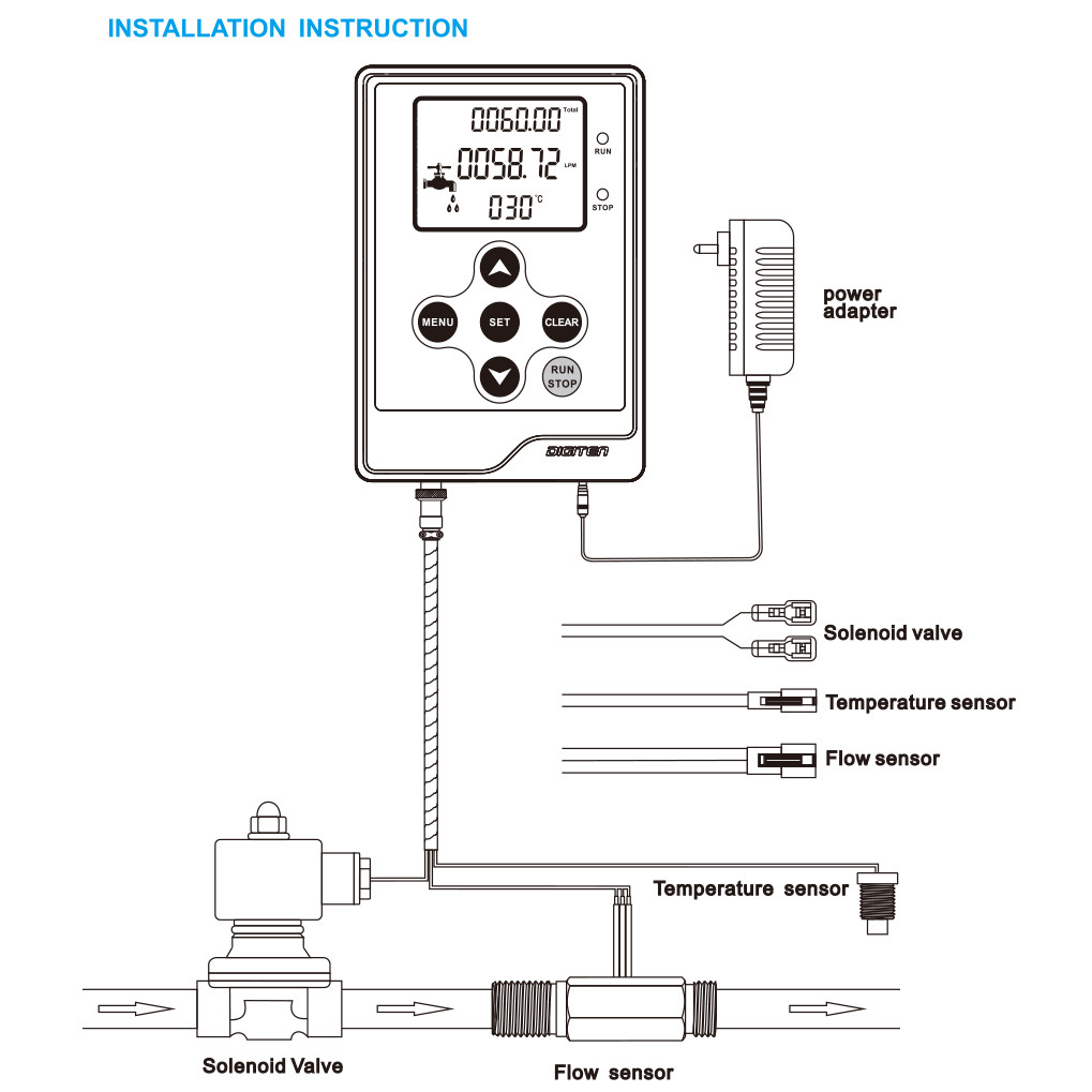 Water Liquid Flow Rate Volume Quantitative Control LCD Display+1/2"Flow Sensor Meter+1/2"Solenoid Valve+Power