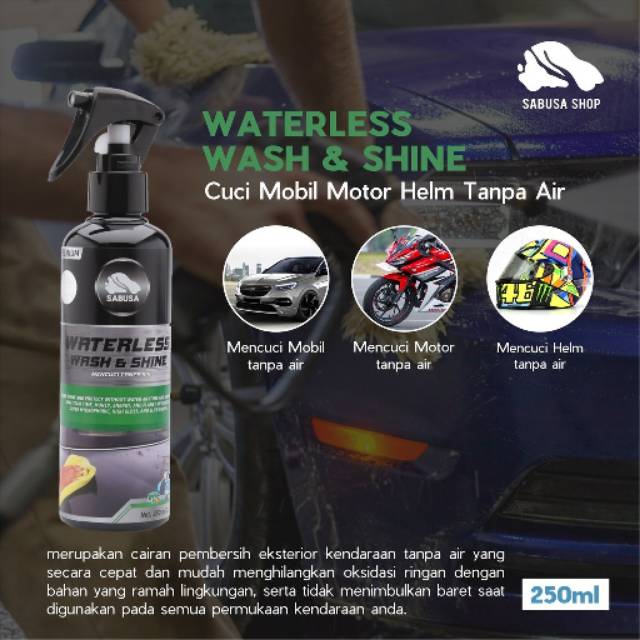 Waterless Wash & Shine Cuci Mobil Motor Helm Tanpa Air Efek Hidrofobik SABUSA 250ml