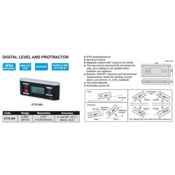 Waterpass Digital / Level / Inclinometer 360 degree INSIZE 2179-360