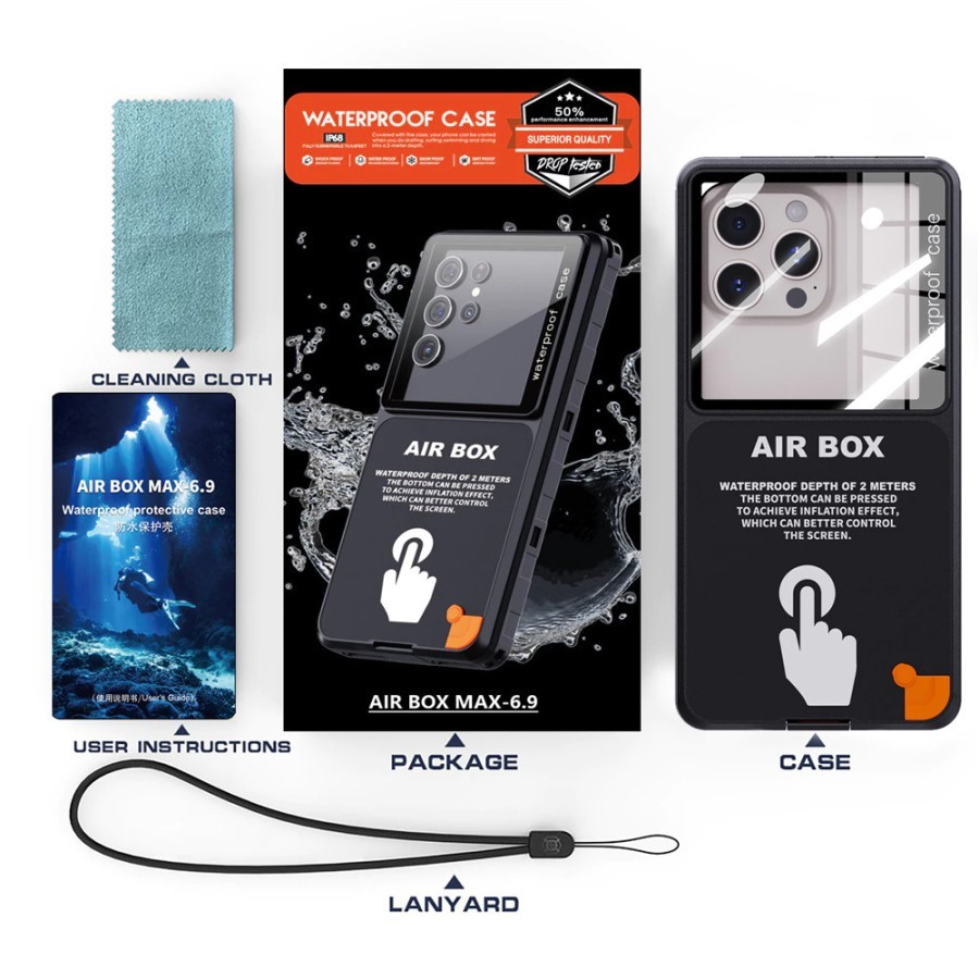 Waterproof Case AIR BOX MAX 6.9 inchi Full Protection Hard Casing for Smartphone HP Universal Iphone Samsung IP68 Tahan Air Dust-Proof