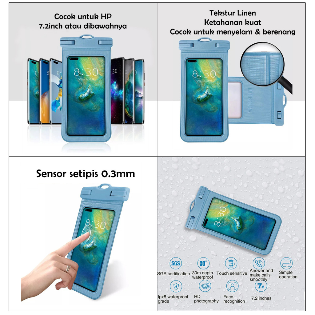 Waterproof Phone case Sarung Pelindung HP Anti Air IPX8 Water proof Bag Rating