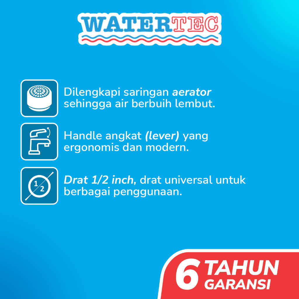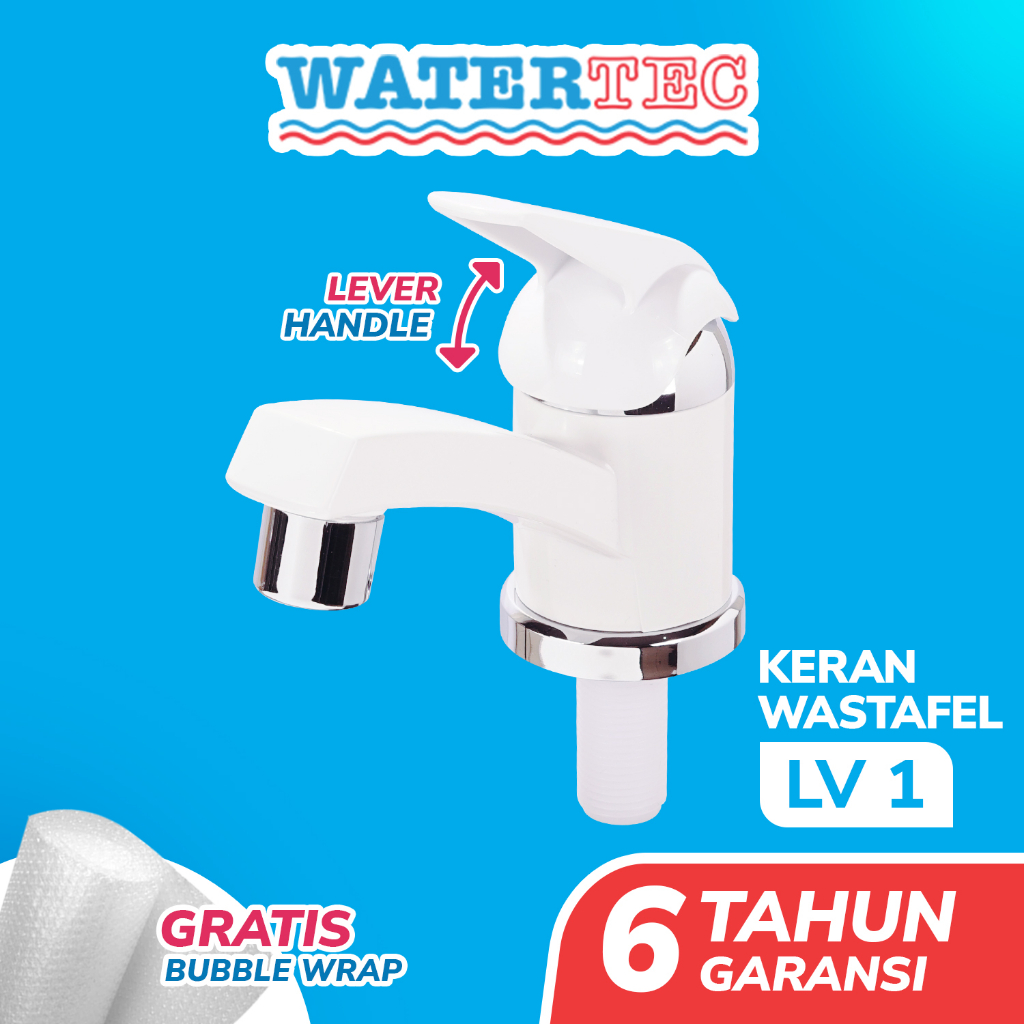 Watertec Keran Wastafel Polimer Tanam Meja Handle Lever Angkat 1/2" (LV1) - White Chrome