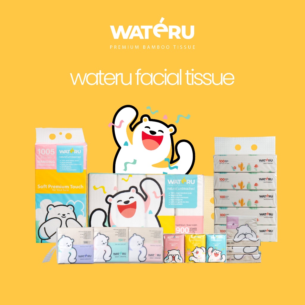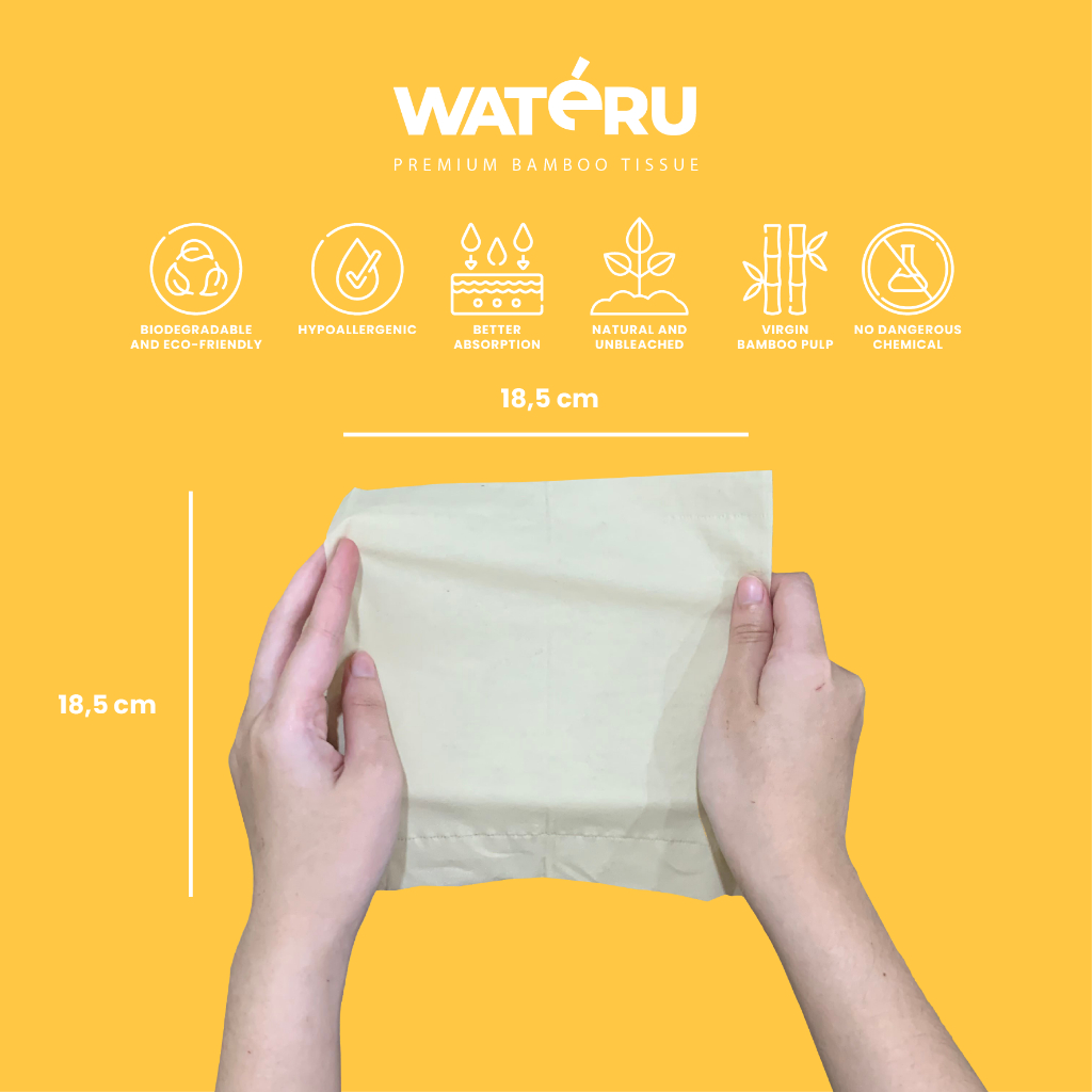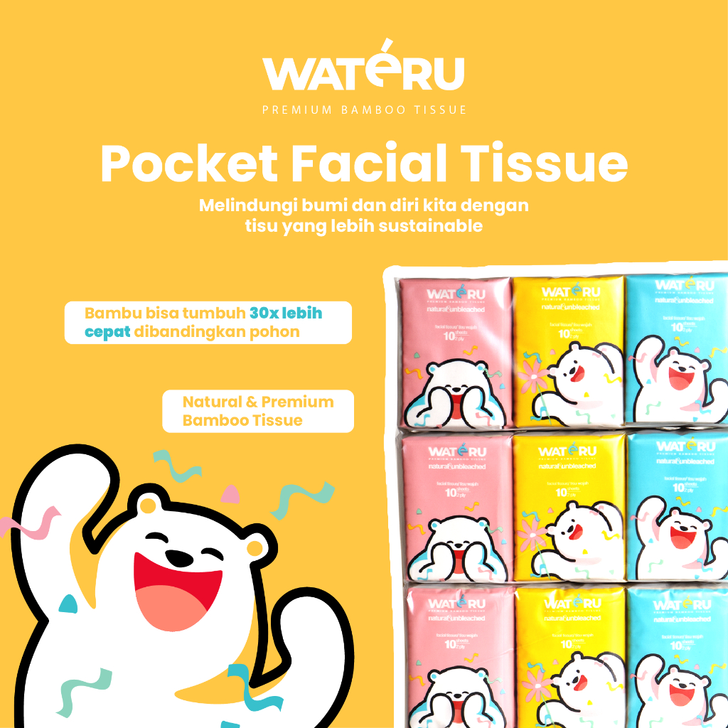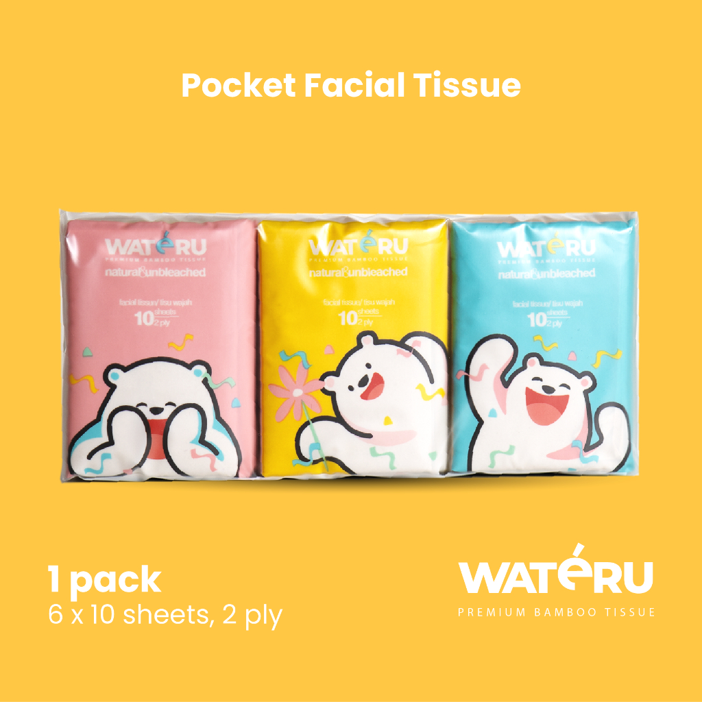 Wateru Pocket Facial Tissue, 1 pack, 6 x 10 sheets, 2 ply | Natural & Unbleached | Wateru Premium Bamboo Tissue / Tisu Bambu