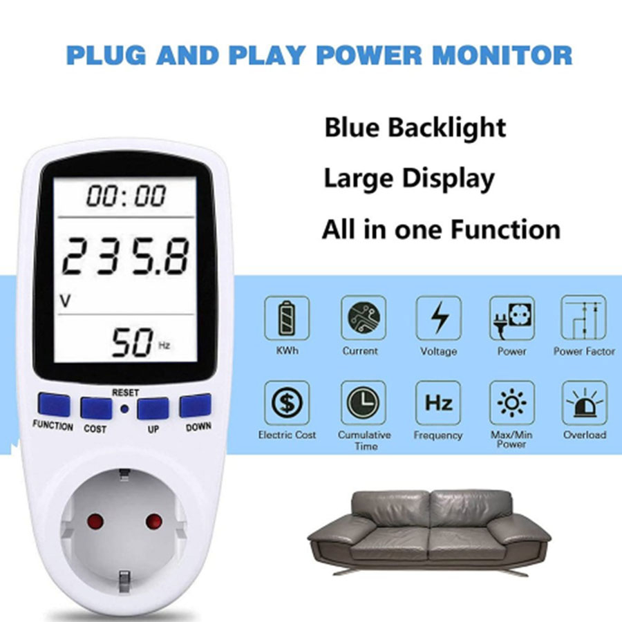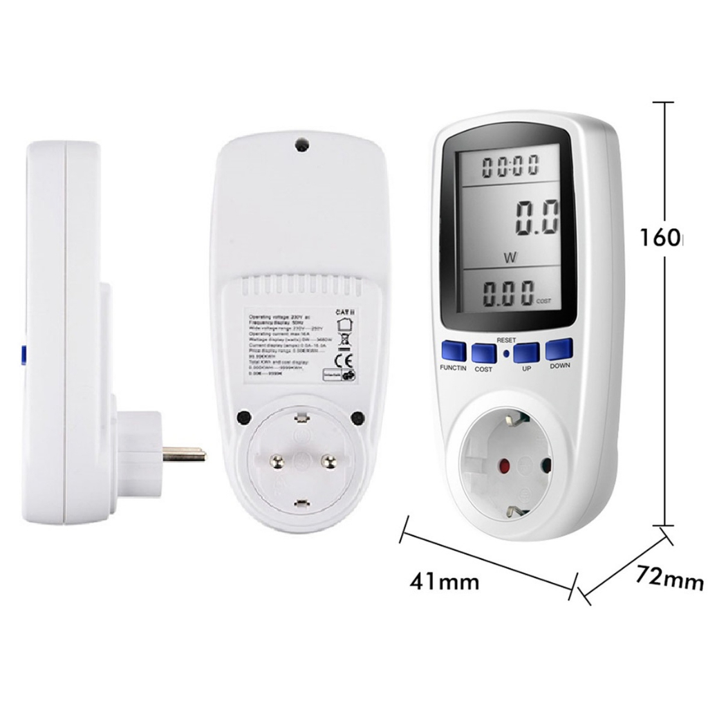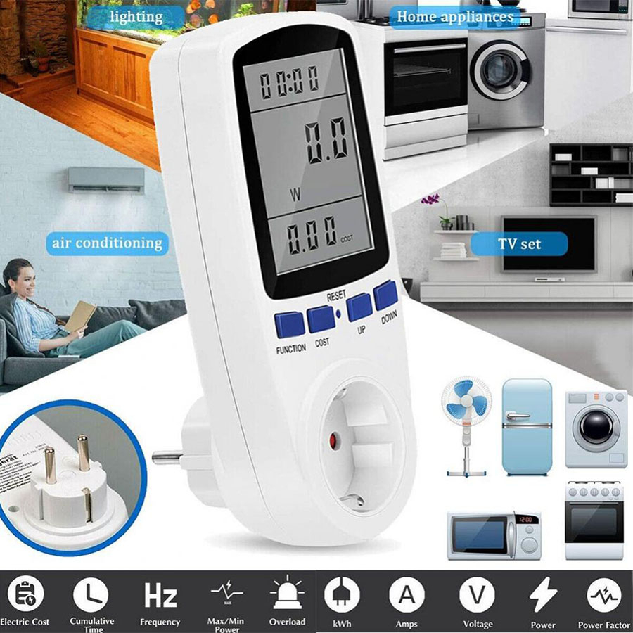 Watt Meter Stop Kontak Pengukur Daya Listrik Wattmeter KWH Volt Ampere Digital Power Meter AC Voltmeter Daya Energy Ukur Biaya PLN