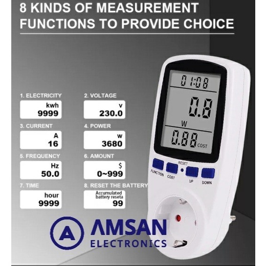 Watt Meter Stop Kontak Pengukur Daya Listrik Wattmeter KWH Volt Ampere