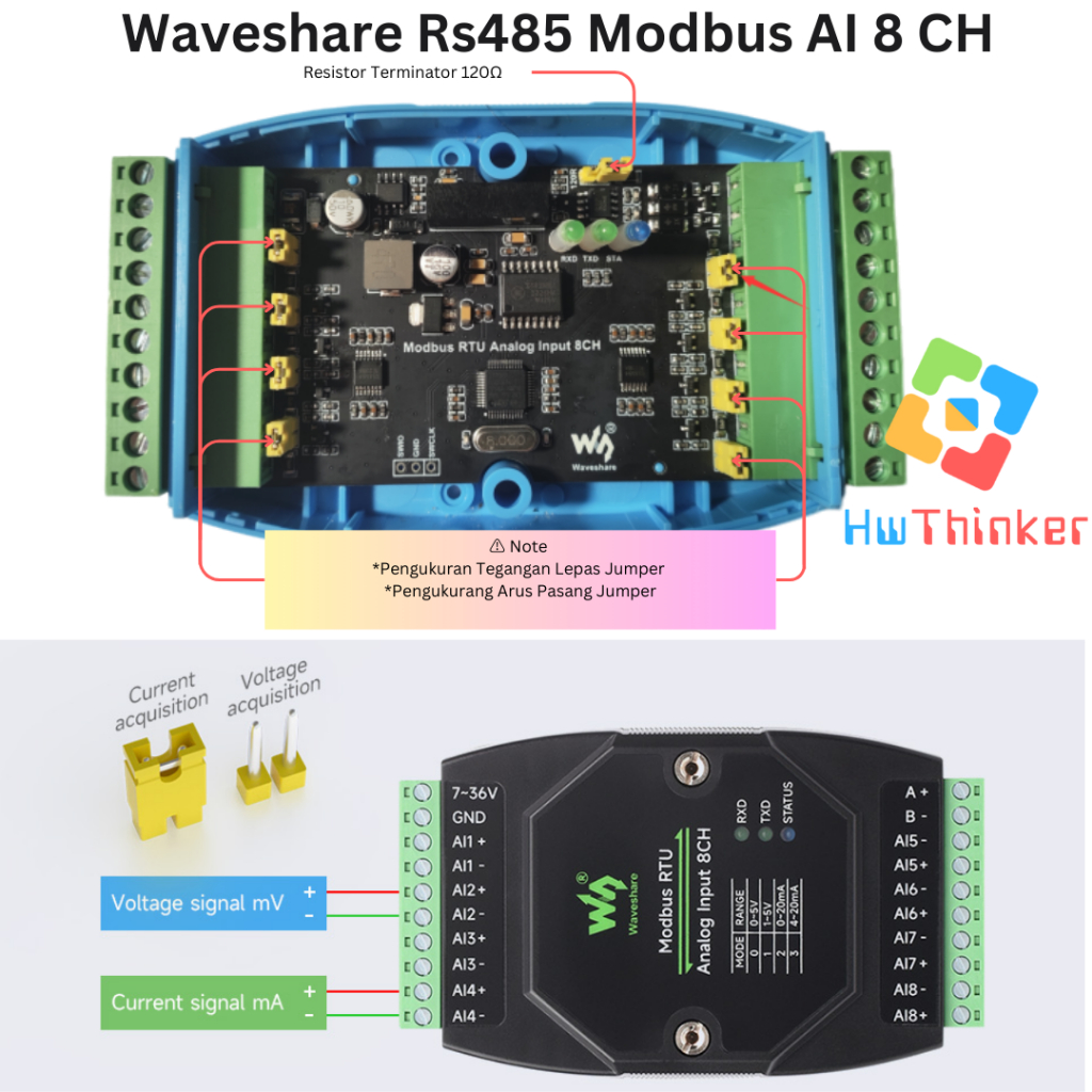 Waveshare Modbus RTU RS485 8 CH Analog Input 8AI Isolated Current 0-20mA 4-20mA DIN RAIL Industrial Grade Analog Remote IO Data Acquisition Control Module