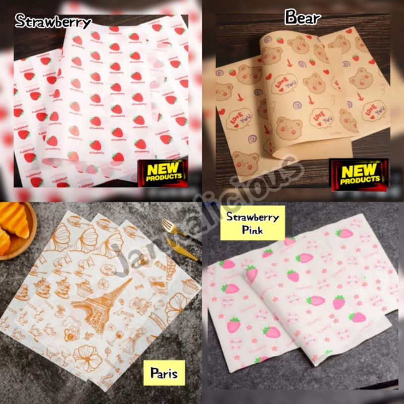 Wax Paper / Baking Paper MOTIF uk 28 x 38 cm ~ LEBIH TEBAL 38 GSM ~ Food Grade (25 Pcs)