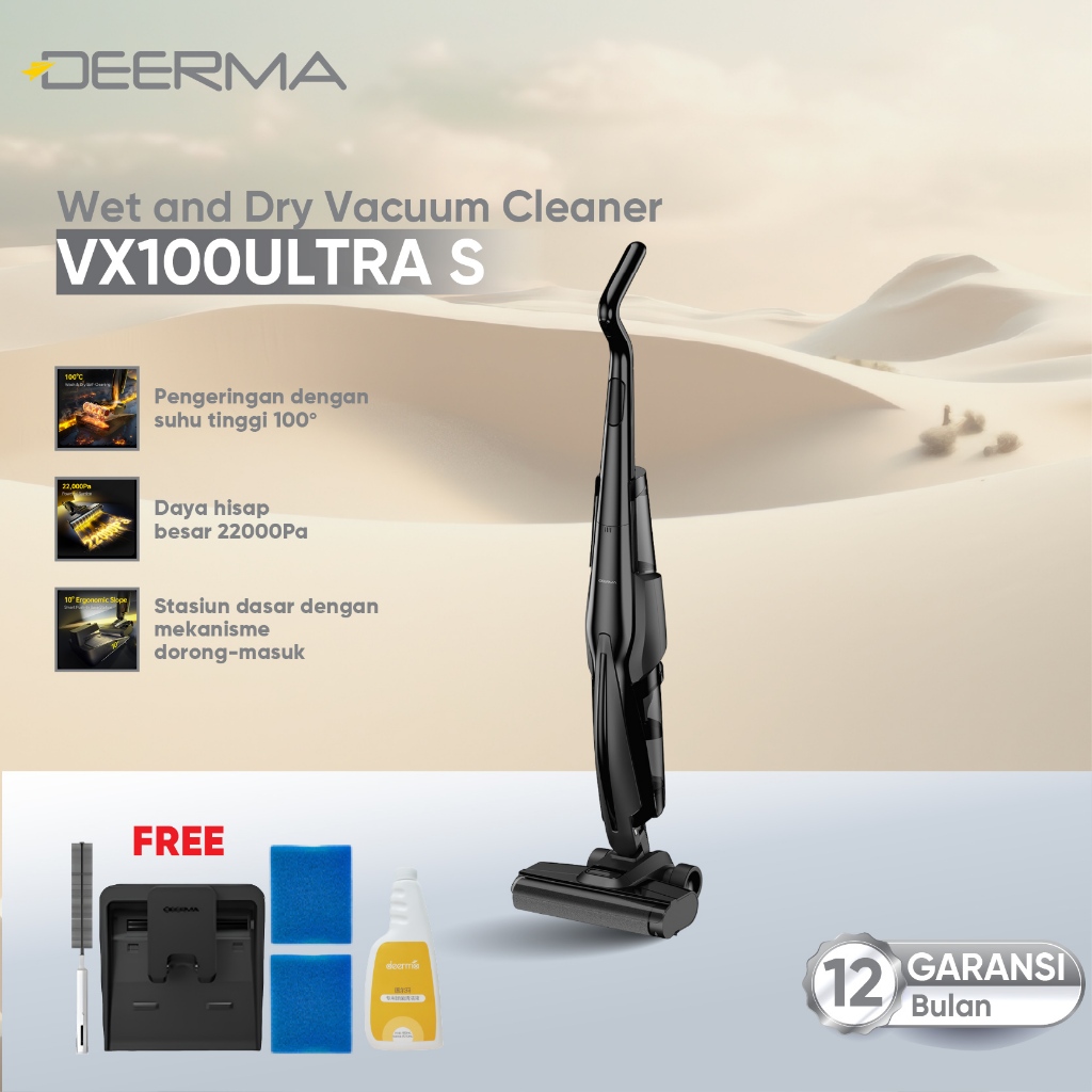 Deerma VX100 Ultra-S 22Kpa Cordless Wet Dry Vacuum Cleaner | 70°C Self-Drying & Cleaning | 180°Flat Reach | Garansi 1