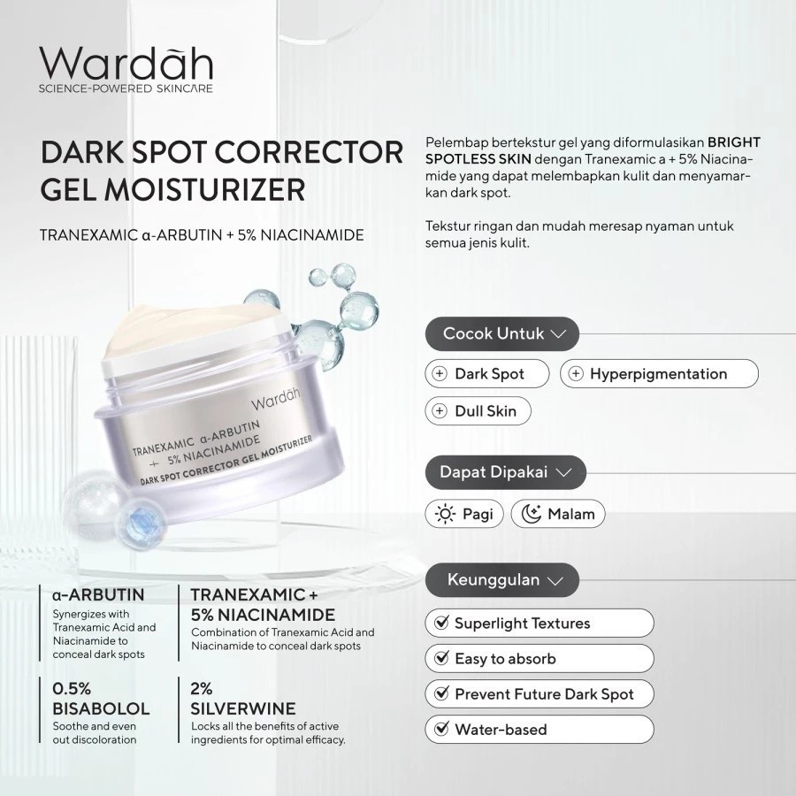 [NEW ]Wardah Gel Moisturizer |Pelembab Wajah |Cica Complex | Vitamin C | Tranexamic | 14X Hyaluron