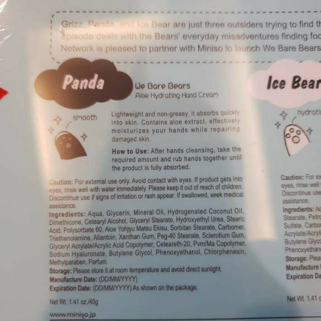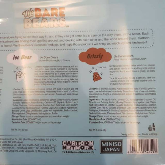We Bare Bears Hand Cream Gift Set Official Licensed Cartoon Network Miniso Japan Ready Stock