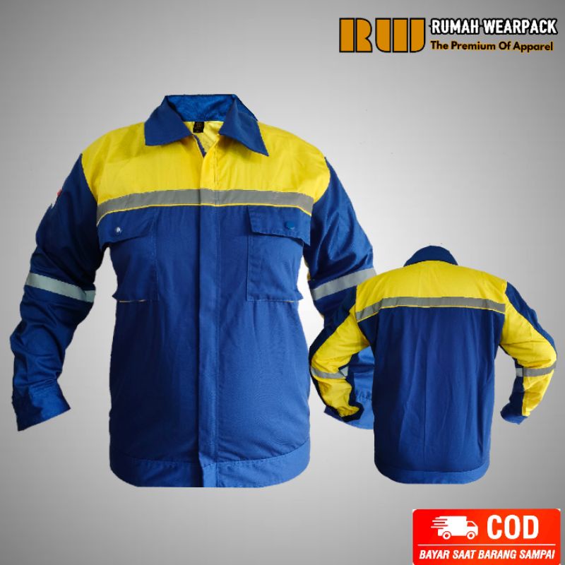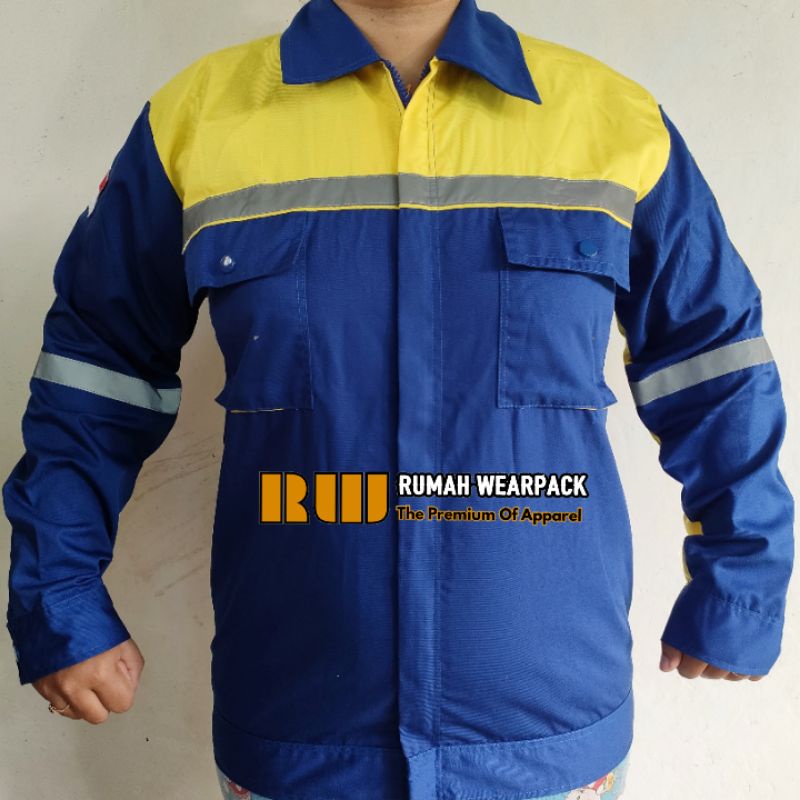 Wearpack Safety/ Baju Proyek / Seragam Kerja Warna Biru Benhur Kombinasi Kuning
