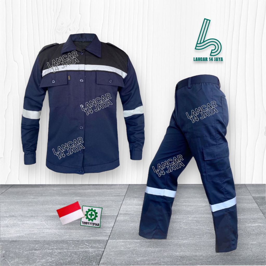 Wearpack Safety Kombinasi 2 warna / Katelpak Kombinasi / Setelan Wearpack Kemeja Panjang / Katelpak Seragam Proyek