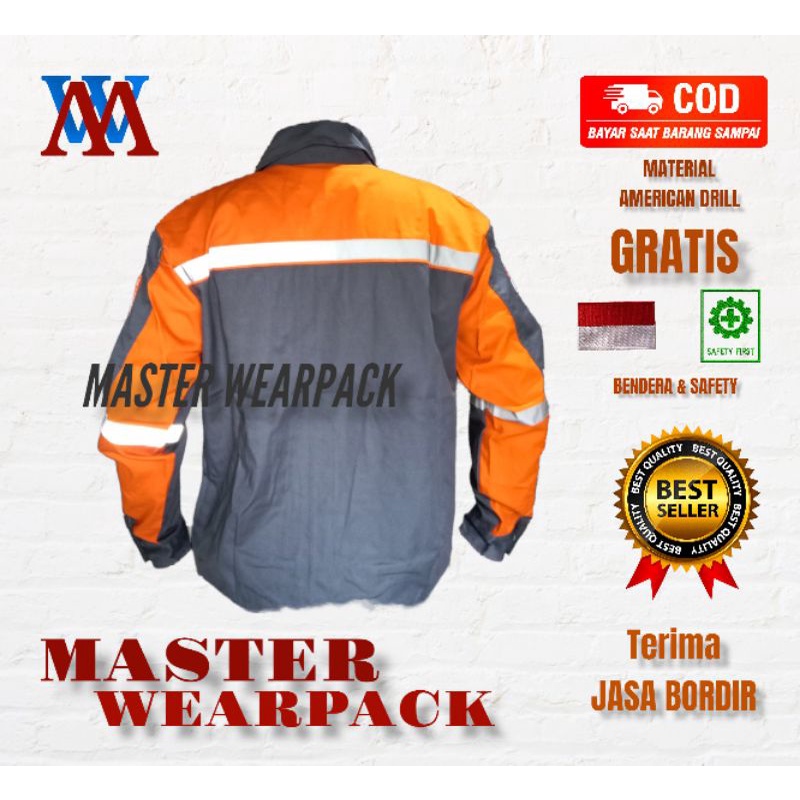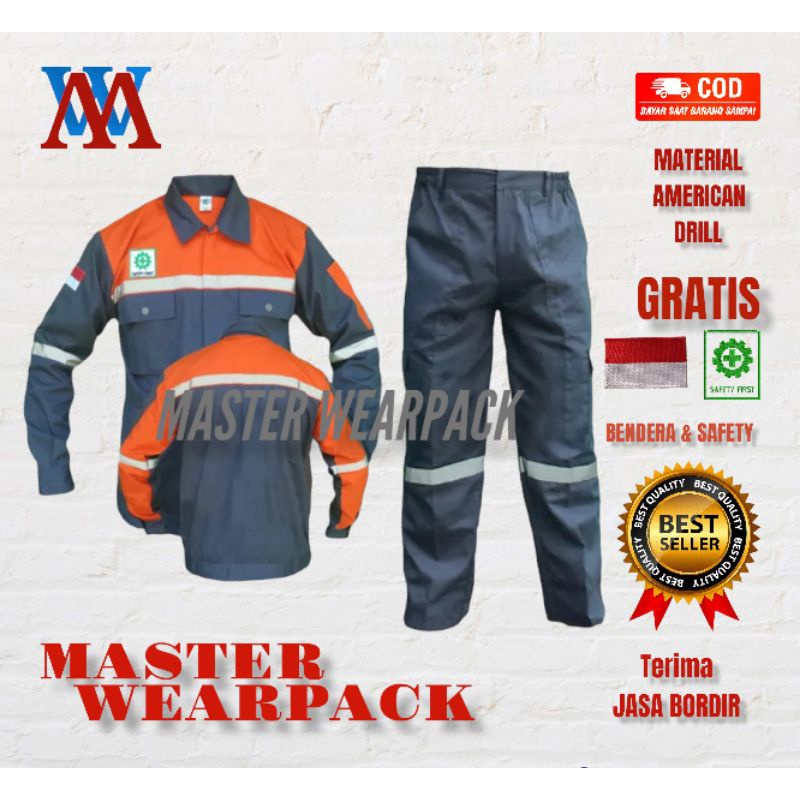 Wearpack Safety SETELAN warna ABU ORANGE/Lengan Panjang