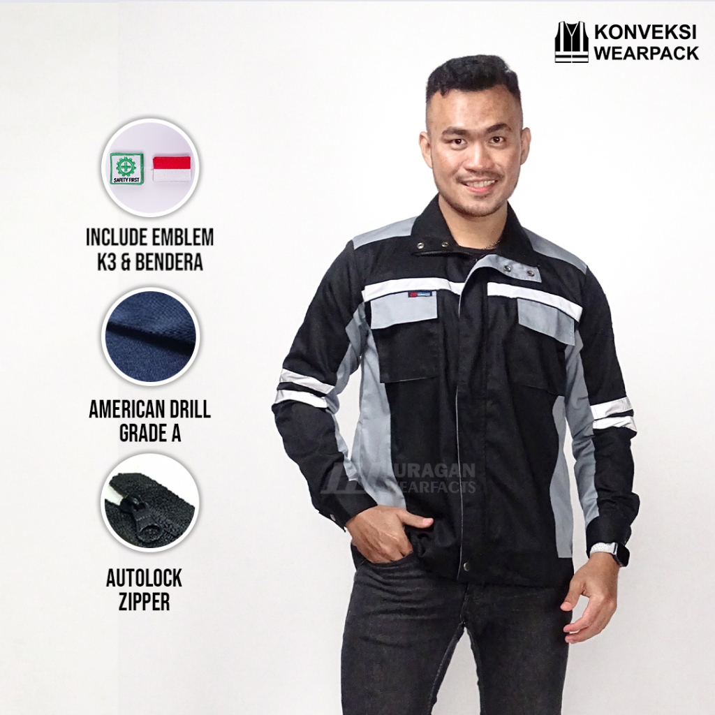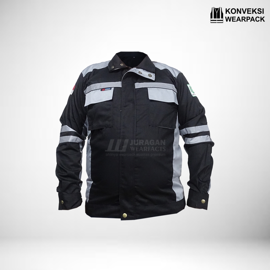 Wearpack Safety Warna Hitam Kombinasi Abu-abu
