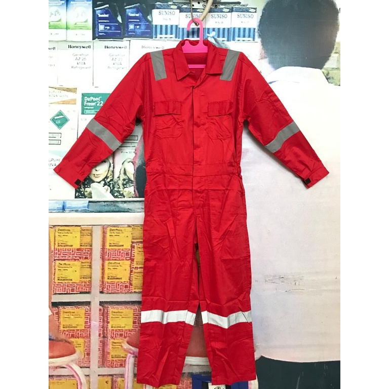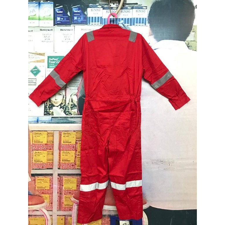 Wearpack coverall bahan americn drill / Wearpack safety warna merah